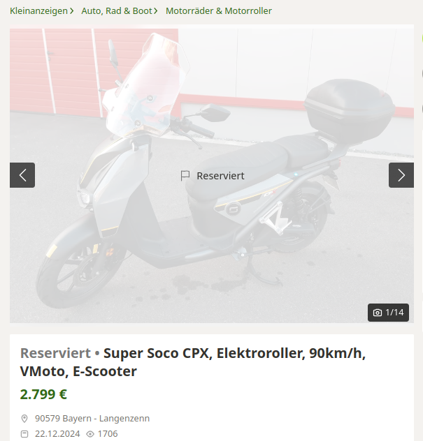Re: Ist dieses Gebrauchtangebot eines Super Soco CPX ein gutes Angebot?