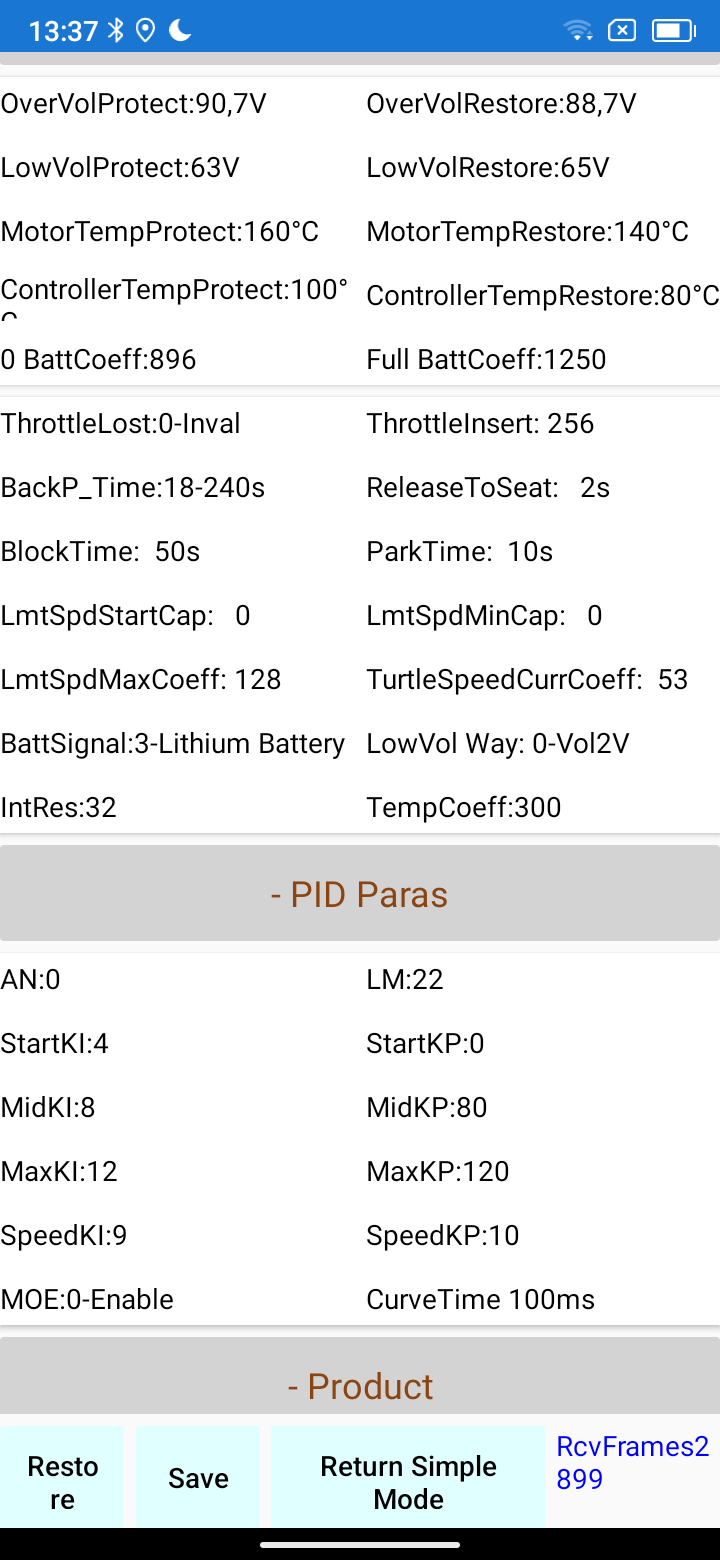 Moin zusammen...habe heute Mal das hier geschriebene auf meinem Controller umgesetzt. Fühlte sich erstmal sehr gut an. Fuhr sanft an und schien auchgut Gas anzunehmen. Leider nur für ein paar Meter. Dann ging nichts mehr. Der Controller piepte alle 5-6 Sek. 2 mal. Schien mir als ob der Controller abschaltet. Da ich in dem Zustand auch keine Verbindung zur App hinbekam. Hab das Teil dann in die Scheune geschoben