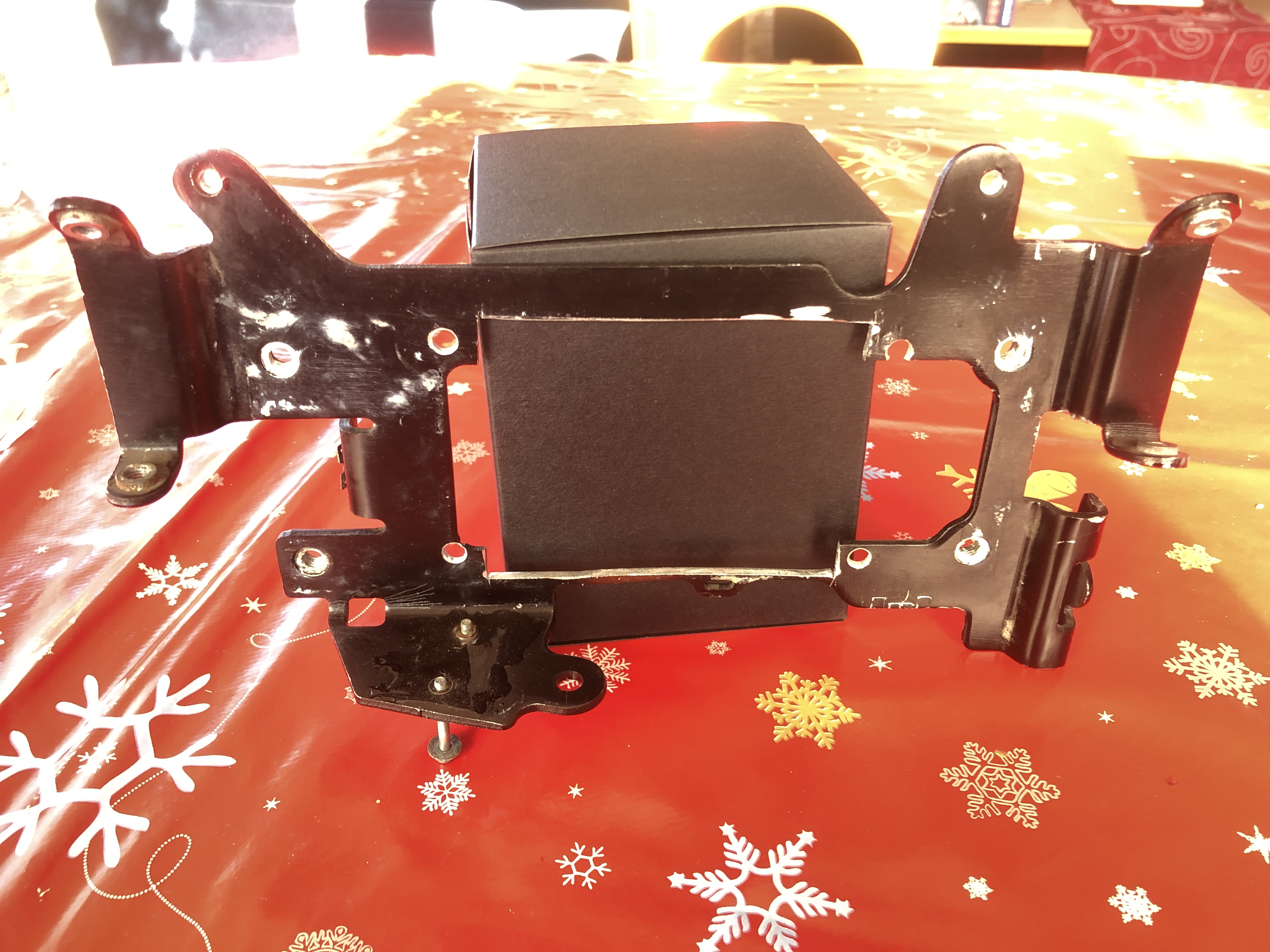 Und das ist das beste Bild, das ich von den zwei Schrauben machen konnte, von unten, mit denen der fette Anderson angeblich abgeschraubt werden soll, ich aber weder 3 noch 4mm Sechskant Bits da zum Greifen bewegen kann, blind!