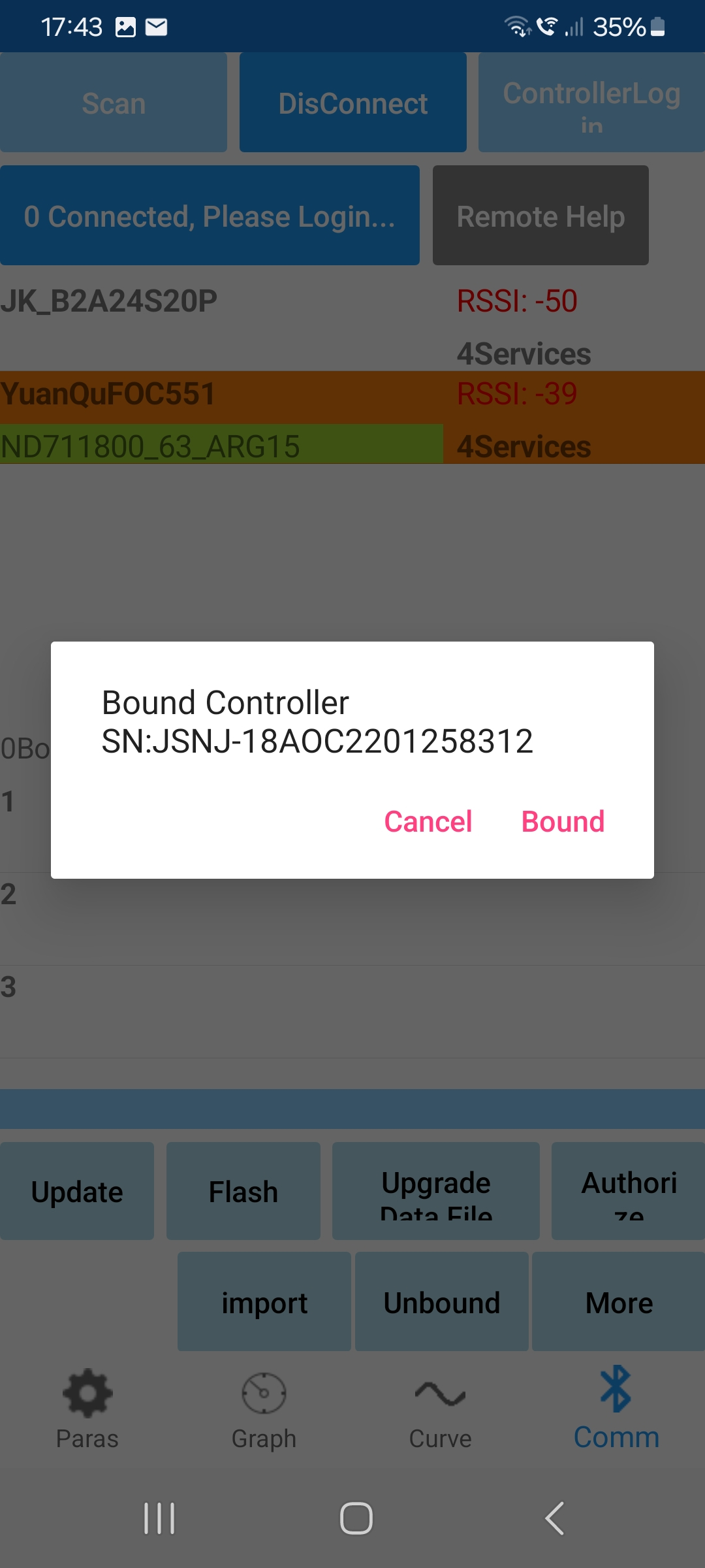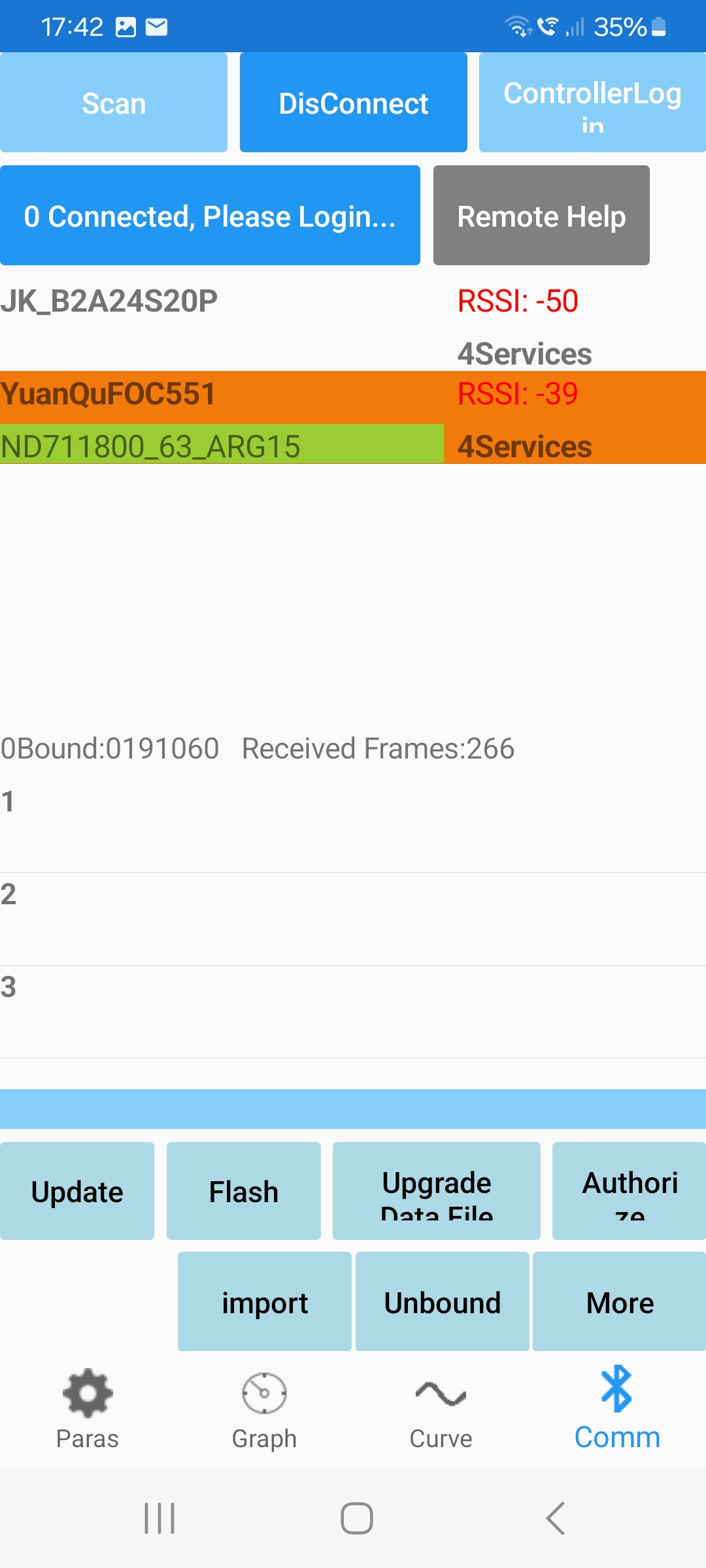 also heute morgen hab ich nochmal alles deinstalliert und neu gemacht. Und was soll ich sagen, es hat funktioniert. Ich hab sofort den Code bekommen. Natürlich bin ich sofort zu meinem TukTuk und hab es ausprobiert. Ja die App erkennt den controller und die Frames fangen an zu laufen. Aber oben links steht dann 0 connected, please login. Und es gibt ja zweimal login. einmal "User login" und oben rechts "controller login". aber woher bekomme ich oben rechts das Password? Ich hab ja alles korrekt verkabelt und die Kiste würde ja eigentlich laufen. Aber die Drehrichtung des Motors stimmt nicht.Er läuft rückwärts schnell und vorwärts langsam. Kann man die Drehrichtung irgendwie selbst verändern. Vielleicht durch Kabelumstecken oder so.