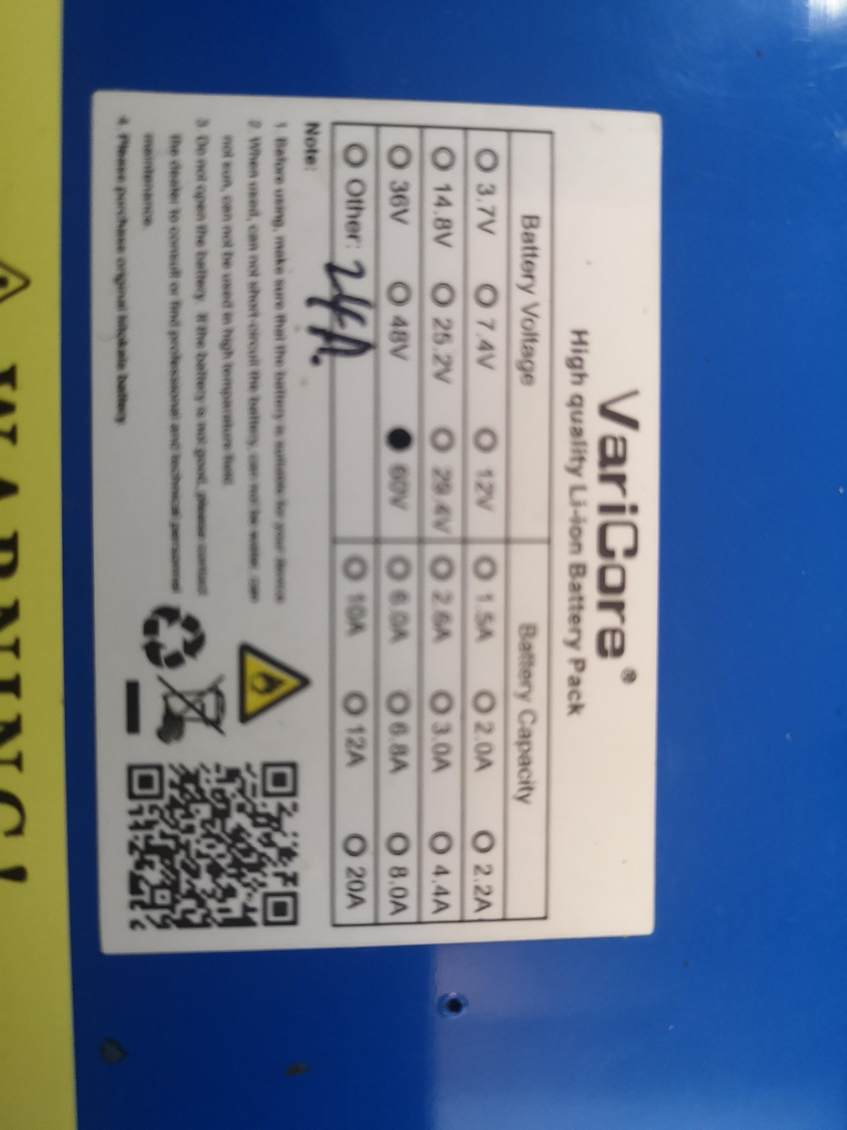 Mein Modell sollte von Varicore mit Liitokala-Zellen stammen. Das kann ich nicht überprüfen, ist aber nicht unwahrscheinlich. Das Pack 16s 8p soll 24Ah Kapazität haben, also 3.000mAh/Zelle. Das könnte auch passen.