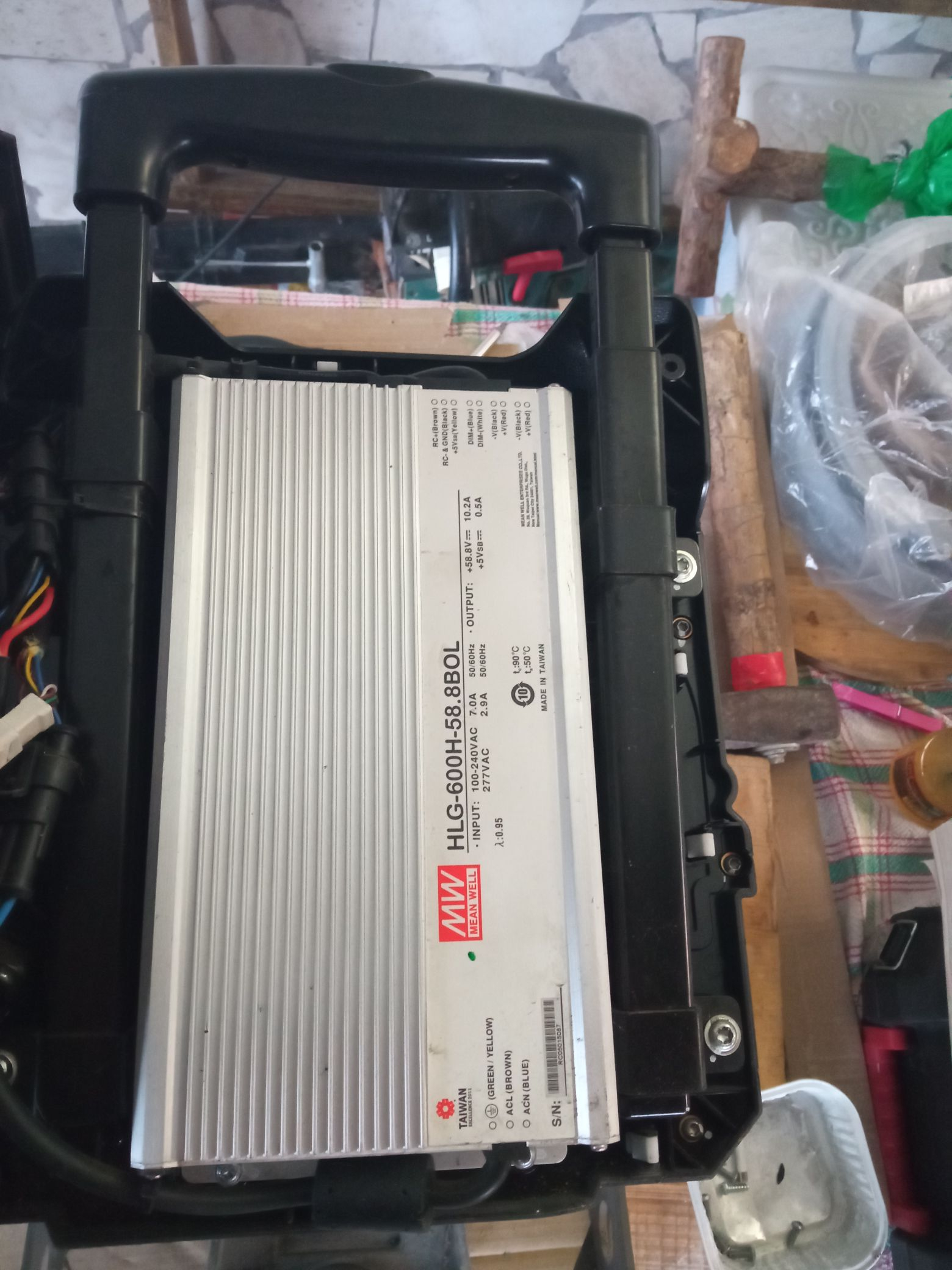 Die Frage ist, warum ist die Sicherung durchgebrannt? Das Netzteil kann eigentlich nur 10A. Es hat, soweit ich das verstehe, eine Überstombegrenzung, und dürfte die Sicherung auch bei Kurzschluss gar nicht auslösen. Soll heißen, der die Sicherung auslösende Strom dürfte vom Akku gekommen sein. Deshalb würde ich als erstes das Netzteil allein auf volle Funktionalität prüfen, mein erster Verdacht wäre ein Problem/Kurzschluss im Netzteil im 58V-Ausgang. Das Netzteil liefert ja auch 5V auf separater Leitung, die dürften den Ring "anschalten".