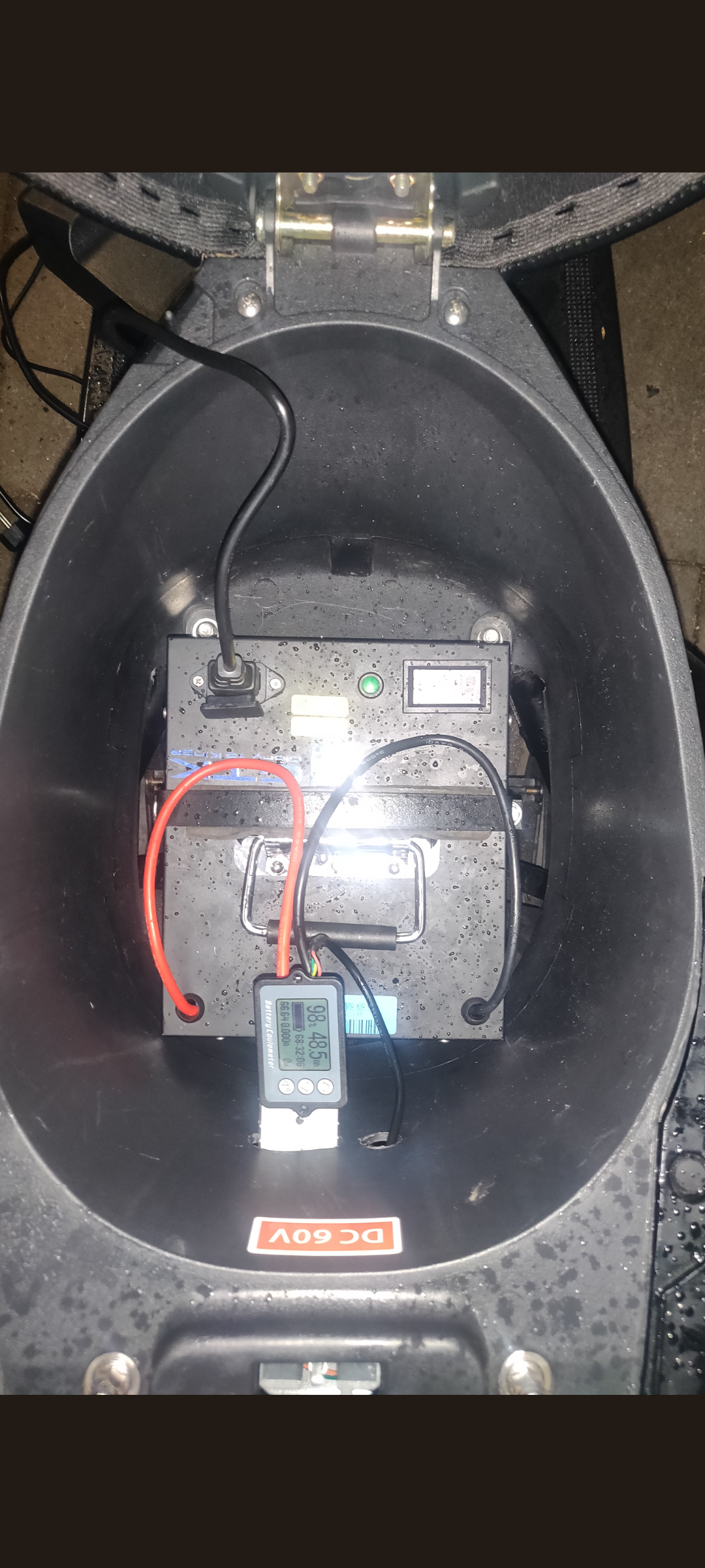 6*14,4V sind 86,4 Volt, dann kann da ein passender Akku rein , dann läuft der am Anfang auch 55-58 km/ h und wird erst später langsam . Mit dem kleinen Topcase würde ich das Batteriefach passend absägen und da mittig den Akku reinstellen. Das Chassis sieht meinem Nova nicht unähnlich.