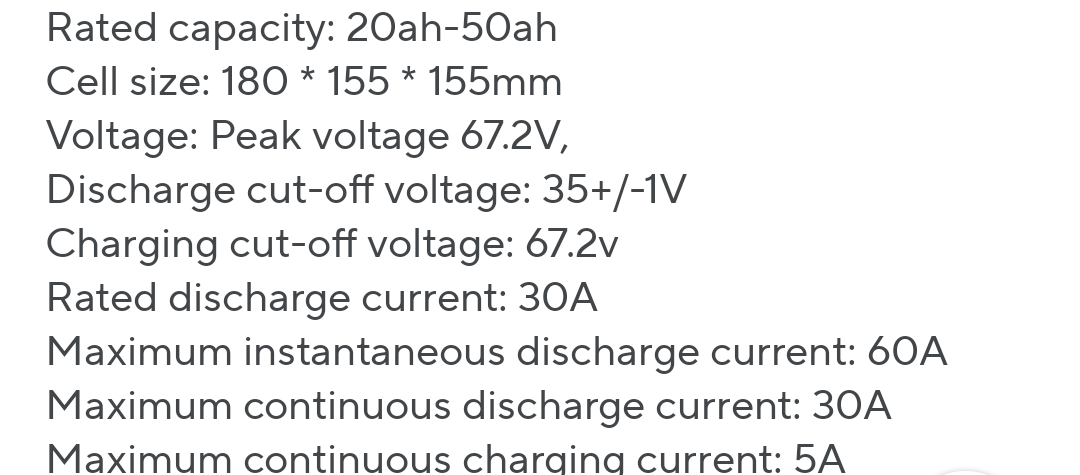 Ah alles klar, danke für die Erklräung und den Link. Bei vielen der Ali Angebote steht ja nicht dabei wie viele Zellen verbaut sind. In der Beschreibung liest man dann halt 60V xxAh und das der Akku für 2000W oder 3000W geeignet sein soll. Diese detaillierten Angaben wie du sie nennst, findet man oftmals gar nicht.