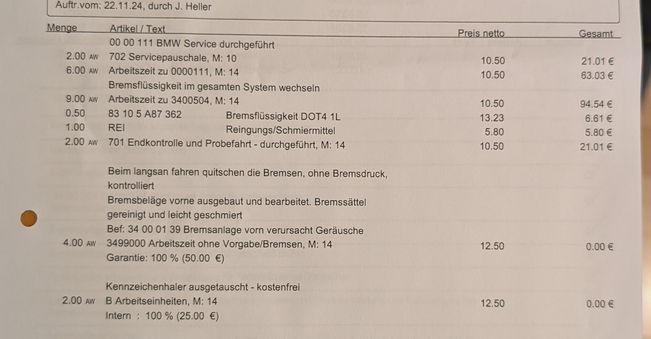 Fallen Bremsprobleme grundsätzlich nicht unter die Garantie (die läuft noch bis Anfang 2026)? Sie haben 40 € berechnet.