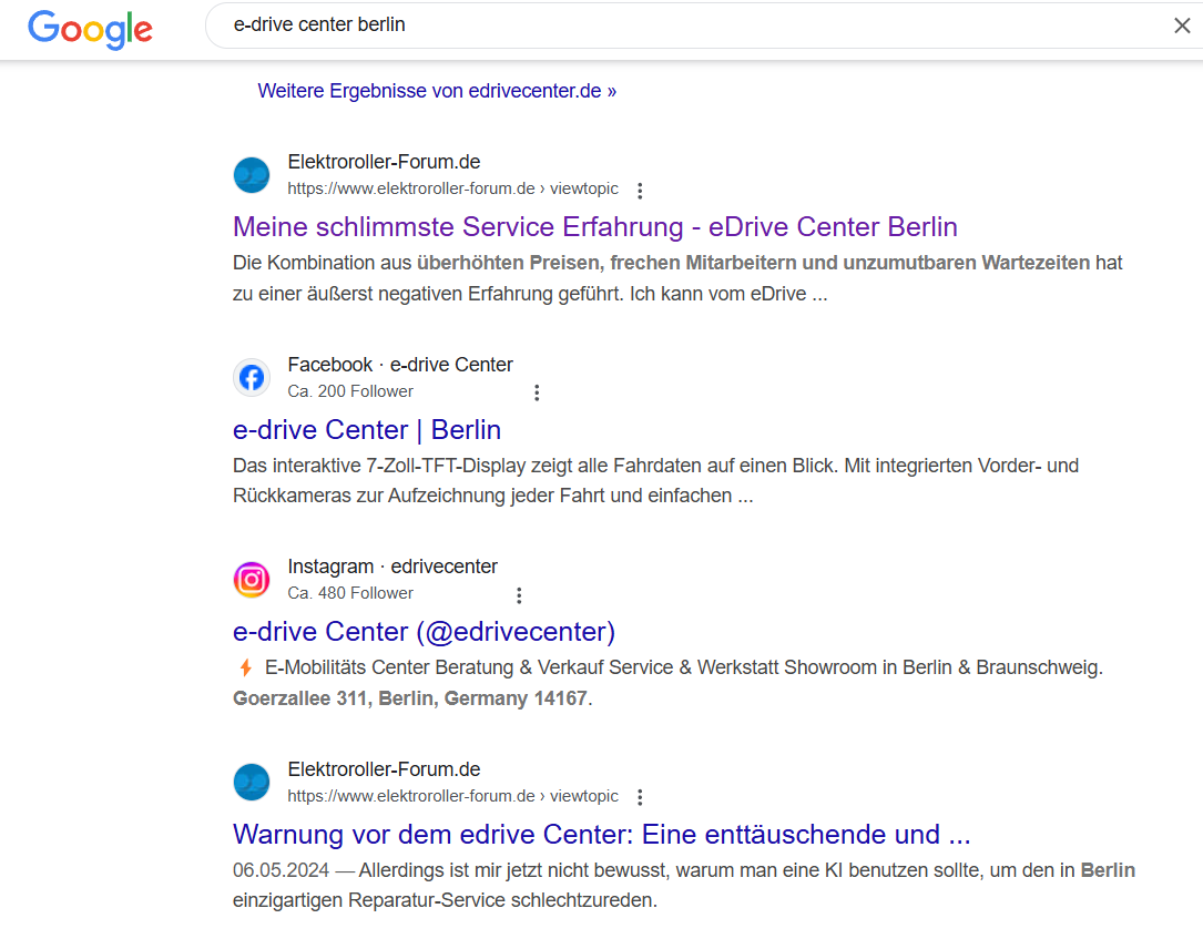 Habe mal e-drive center berlin bei Google eingegeben: