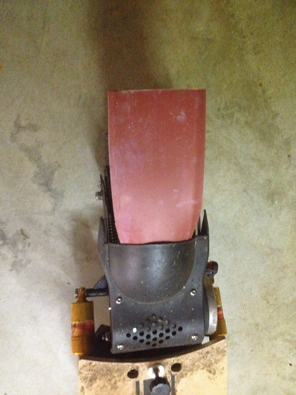 Egal, nun zum Thema Spritzschutz für Evoking: Wie auf den Bildern zu sehen ist, habe ich natürlich Kunststoff verbaut. Es handelt sich dabei um einen sehr weichen Kunststoff, sehr schön Formbar. (der rote) Vorn das schwarze ist ein Teil eines Spritzschutzes des Mach1, passt aber überhaupt nicht. Am Vorderrad hinten ist ein aufgeschnittener Schrumpfschlauch verbaut, der Vorteil, nachdem ich diesen wie ein Spritzlappen verbaut hatte (an 3 Punkten geschraubt) habe ich diesen oben herum
