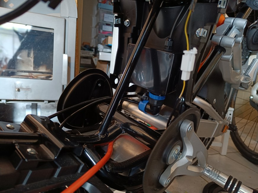 Eigentlich hatte ich geplant einen 30A Lader zu verbauen. Allerdings muss man schon sagen, dass in diesem Bike echt unglaublich wenig Platz vorhanden ist. Ich bin dann schweren Herzens auf einen 12A Lader zurückgegangen. Spätestens ab diesem Zeitpunkt ging es nur noch ums Prinzip :roll: Verbaut hab ich diesen dann im Unterboden in einem Ausschnitt, so dass dieser teilweise herausragt. Wie gesagt, unglaublich wenig Platz ist da vorhanden.