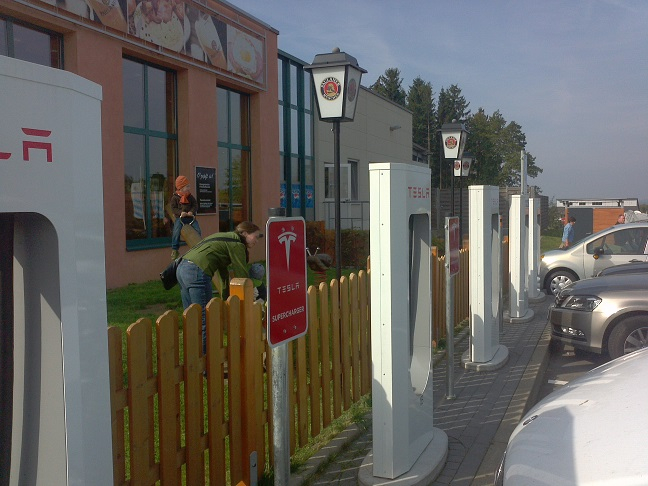 Apropos: Hat natürlich kein einziger Tesla vor den 6 Säulen geparkt