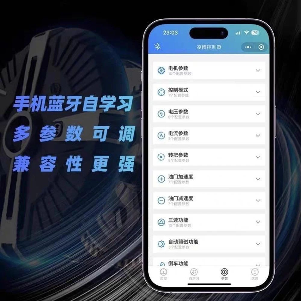 Vmoto Stash controller = Lingbo E1000, bus current 500A, phase line current 1000A, bluetooth direct connection.