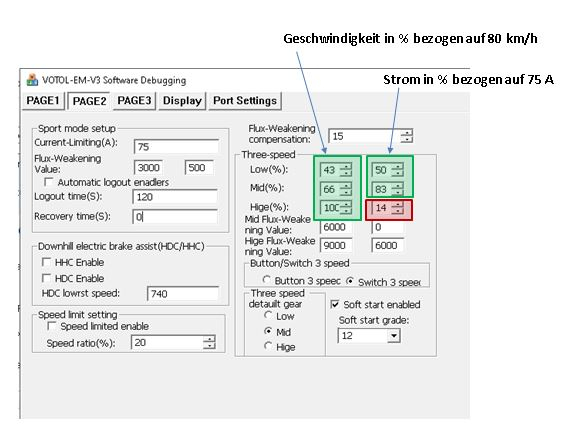 ich hab mich heute nach stundenlangem studieren diverser Foren (sorry, alles hab ich nicht geschafft ;)) auch an meinen Votol Controller EM-50 meiner evMoto Monaco herangedraut.