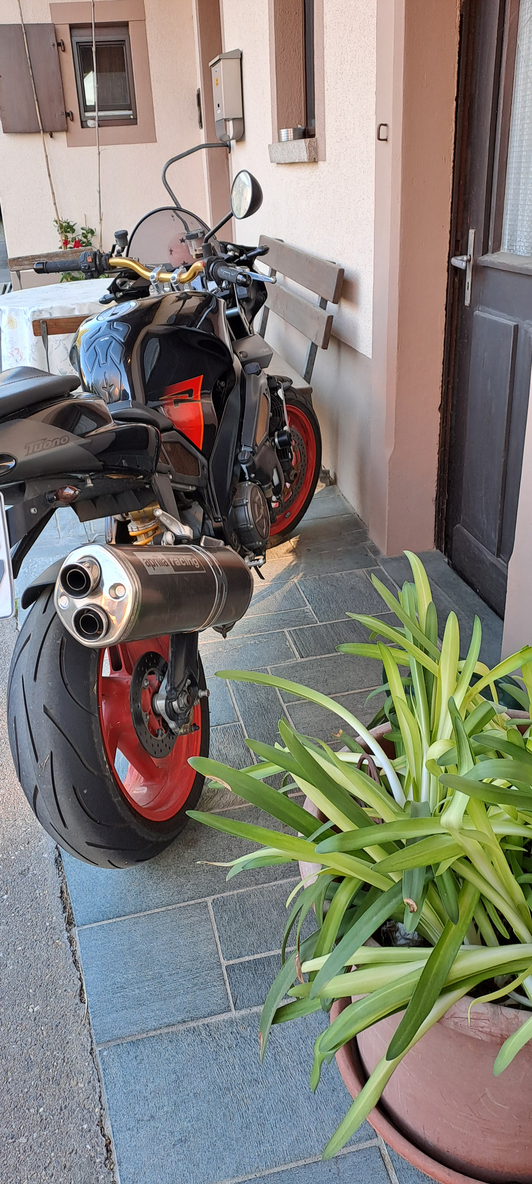 Das kleine Carbon-Brüllrohr mit ABE musste erst mal dem originalen Ofenrohr weichen. Auf der Probefahrt musste ich nach 5km anhalten und Ohrstöpsel rein machen ;)