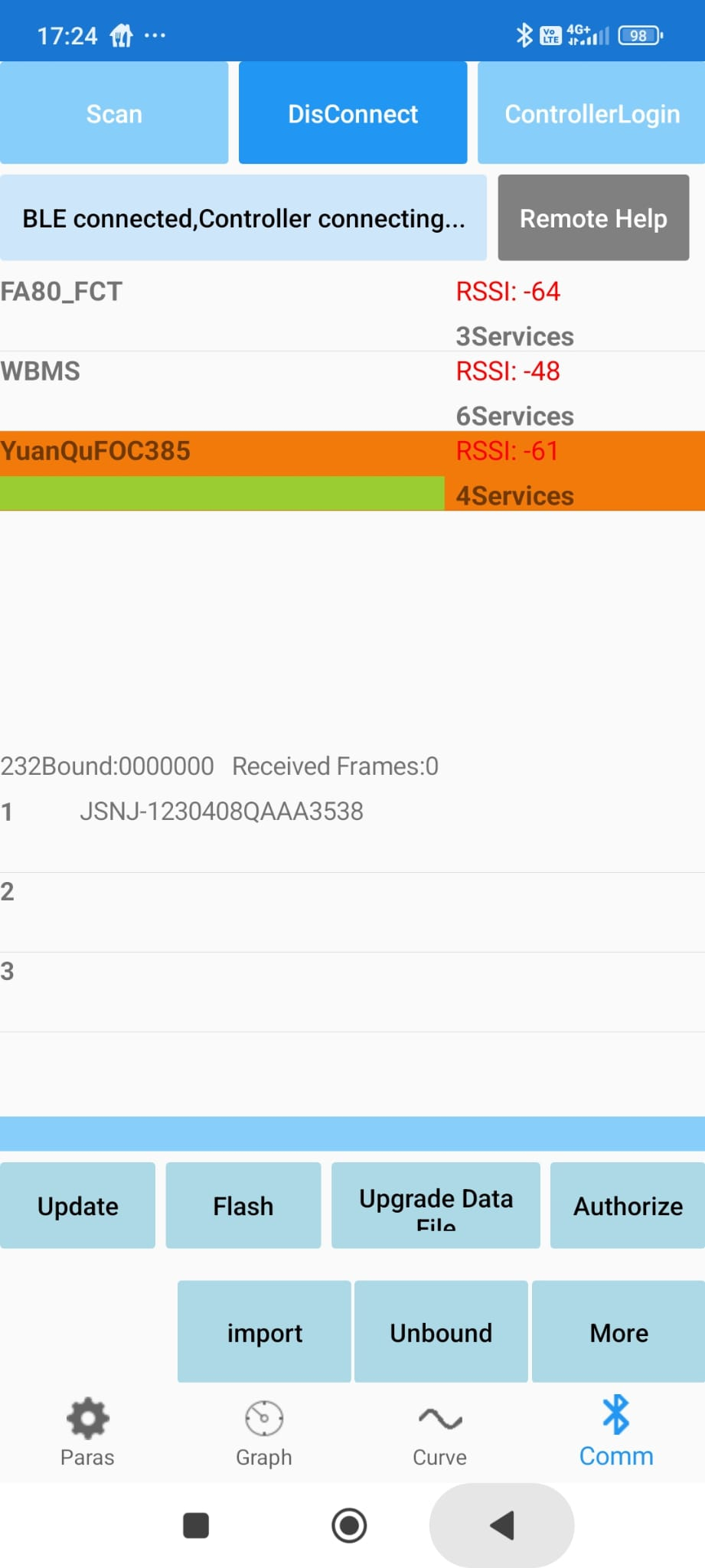 Plötzlich verbindet sich die App wieder mit dem Controller, aber ich kann nichts ändern.