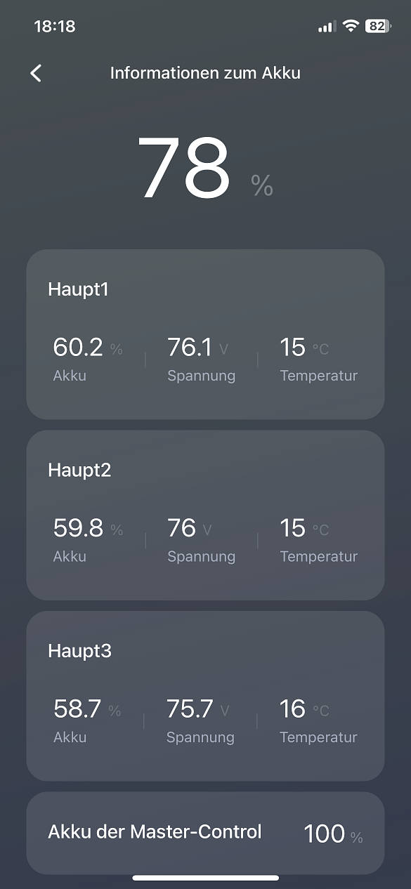 Dafür spinnt jetzt meine Batterie Anzeige: Die Batterien wurde heute morgen auf 80% aufgeladen, die Summe kann noch stimmen, aber die ca. 60% der einzelnen Batterien sind dann wohl nicht "aktualisiert" worden - oder geht da auch gerade mein BT wieder nicht?