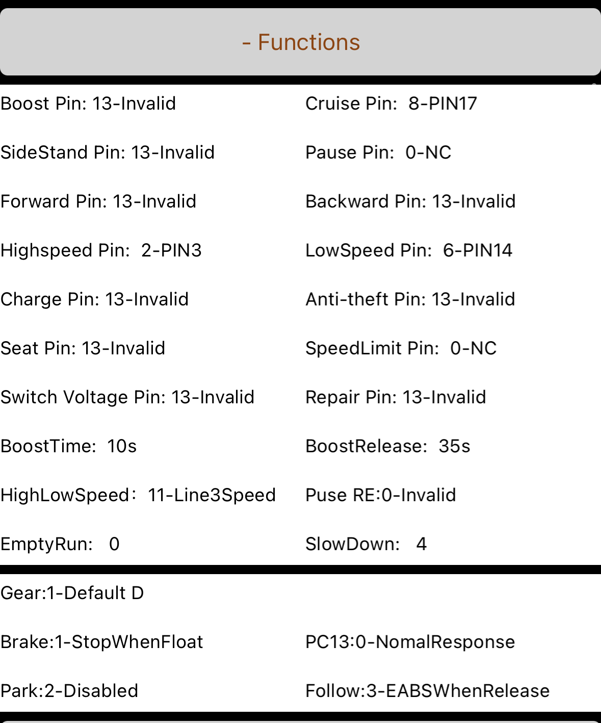 Meine Probleme mit dem Fahrstufenschalter war eigentlich nur die falsche Einstellung beim Punkt HighLowSpeed. Jetzt geht auch diese Funktion wieder. Damit sind alle Probleme gelöst bzw. die Rekuperation auf den Werten die ich mir gewünscht habe :D