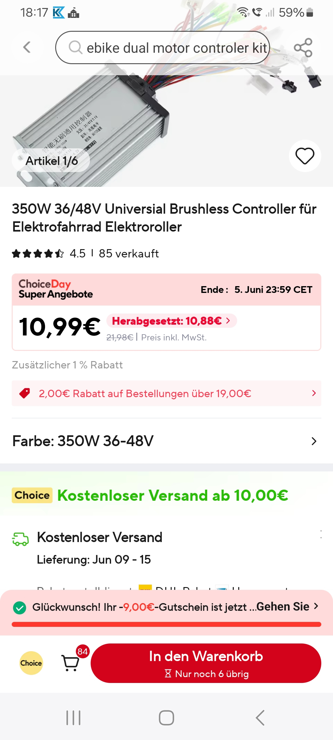 Da ich die Aliexpress App nutze habe ich keine Links zum kopieren, oder ich weiß einfach nicht wie es geht. Wenn der Controller eine Motorschutzfunktion haben soll, dann muss entweder der zim Controller passende Temperatursensor im Motor verbaut sein oder wie bei den Fardriver Controllern eine "Berechnung" der Erwärmung des Motors erfolgen.