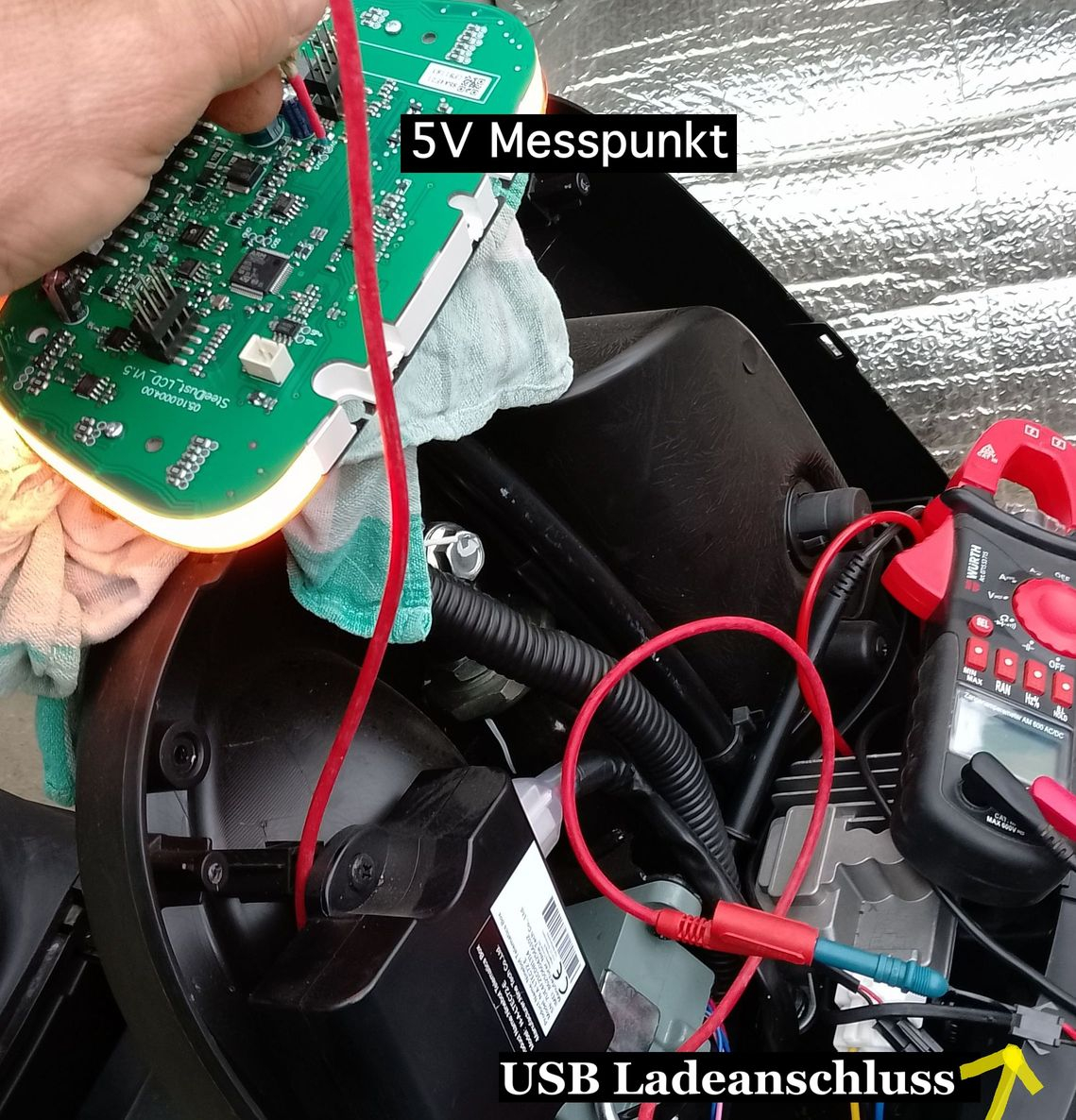 Wenn man nun 5V von der USB Ladebuchse abgreift und bei dem 5V Messpunkt einspeist funktioniert das Display wieder.