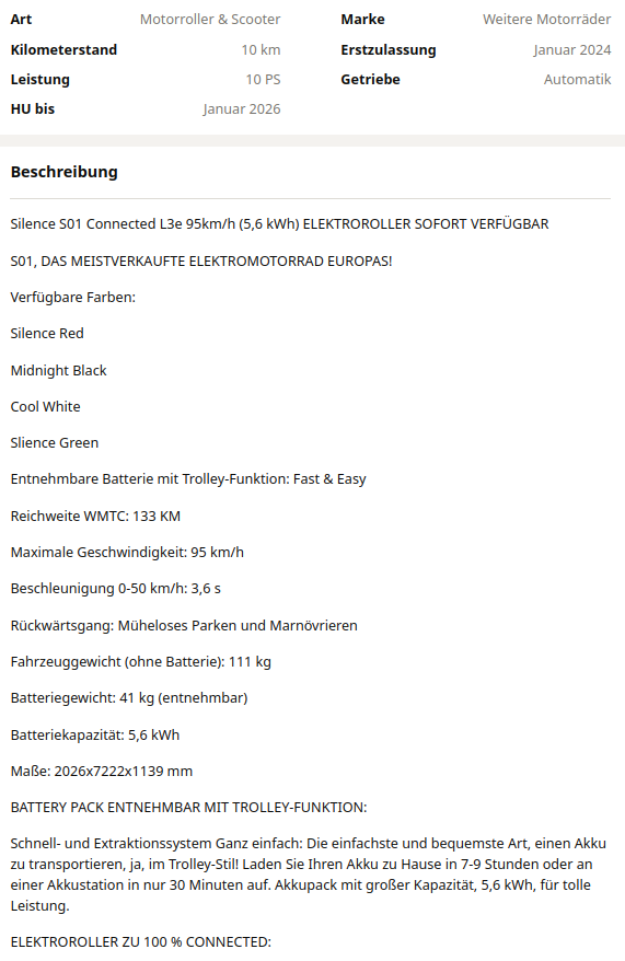 Du wirst die Fuhre komplett zahlen müssen, wenn du sie nicht top gepflegt nach der Leasingdauer wieder abgibst. Ich habe jetzt schon ein paar Mo/Silence gesehen und halte das für nicht-nur-Schönwetterfahrer für... gewagt. Zudem handelt es sich hier augenscheinlich um bereits gebrauchte und zugelassene Fahrzeuge, die ohne Garantie und mit möglicherweise eingeschränkter Gewährleistung - die auch irgendwo geltend gemacht werden müsste - verleast werden.