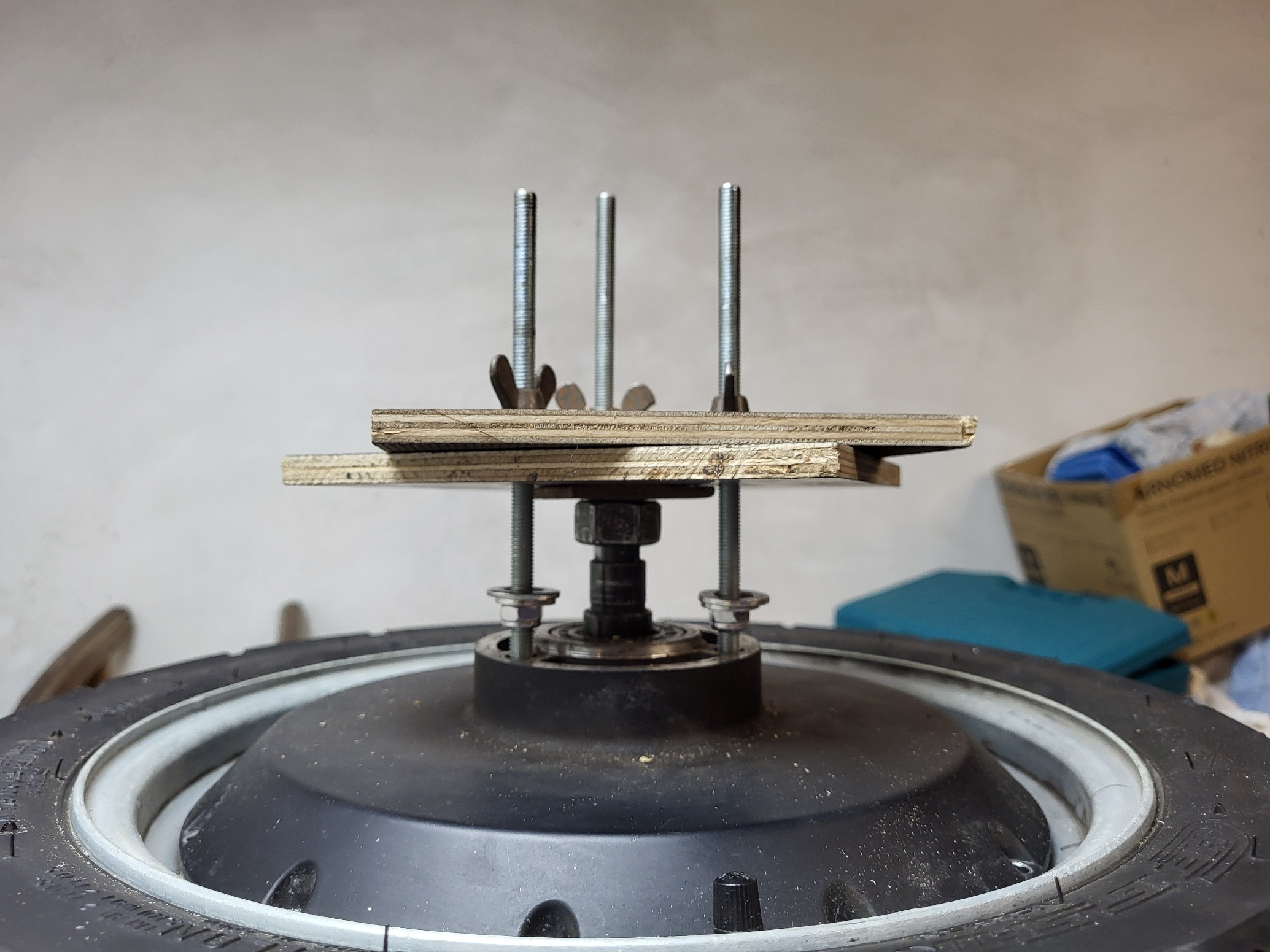 Außerhalb des Motors ist definitiv kein zweiter Kabelbaum für die Hallsensoren. Leider bekomme ich die Deckel nicht ab. Habe mir eine Vorrichtung mit Gewindestangen für die Bremsscheibenaufnahme gebastelt und gegen die Achse mit der Achsmutter gekontert. Bei dem Versuch sind 20 mm Siebdruckplatte geborsten, ohne dass die Deckel sich nur 1 mm gelöst haben. Keine Ahnung wie man die ohne rohe Gewallt lösen soll. Hilft es evtl. den Motor mit dem Heizluftgebläse etwas anzuwärmen?
