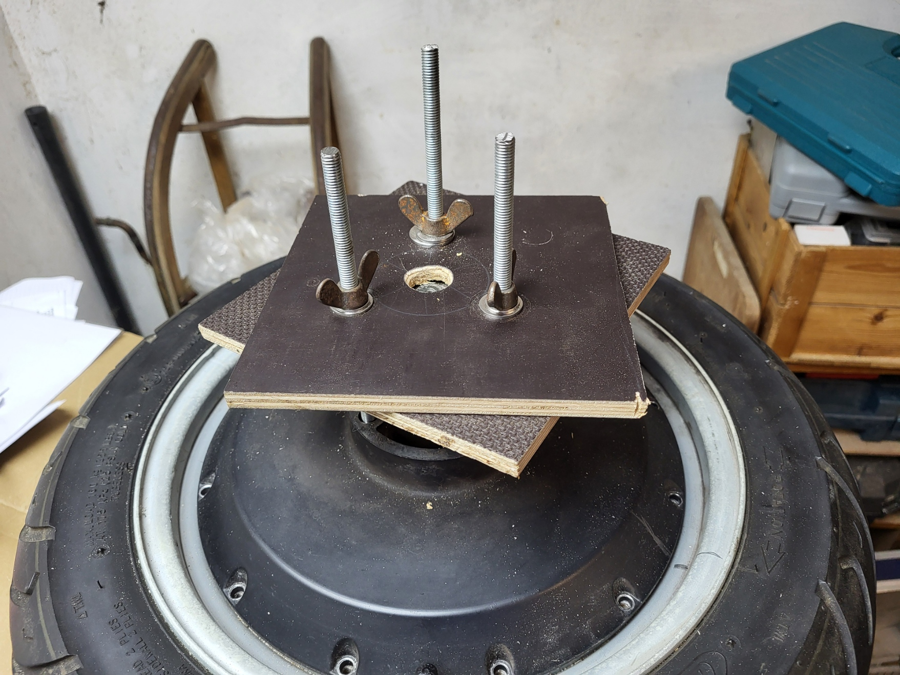 Außerhalb des Motors ist definitiv kein zweiter Kabelbaum für die Hallsensoren. Leider bekomme ich die Deckel nicht ab. Habe mir eine Vorrichtung mit Gewindestangen für die Bremsscheibenaufnahme gebastelt und gegen die Achse mit der Achsmutter gekontert. Bei dem Versuch sind 20 mm Siebdruckplatte geborsten, ohne dass die Deckel sich nur 1 mm gelöst haben. Keine Ahnung wie man die ohne rohe Gewallt lösen soll. Hilft es evtl. den Motor mit dem Heizluftgebläse etwas anzuwärmen?