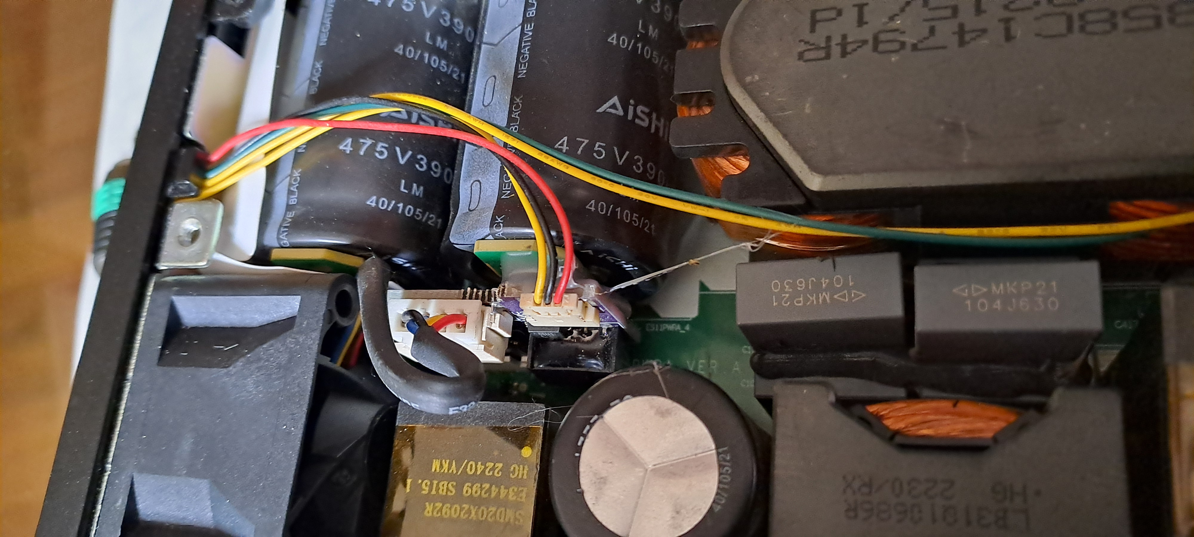 Hinten wurde die Sicherung fliegend verdrahtet um Platz für die Kaltgerätebuchse zu schaffen.