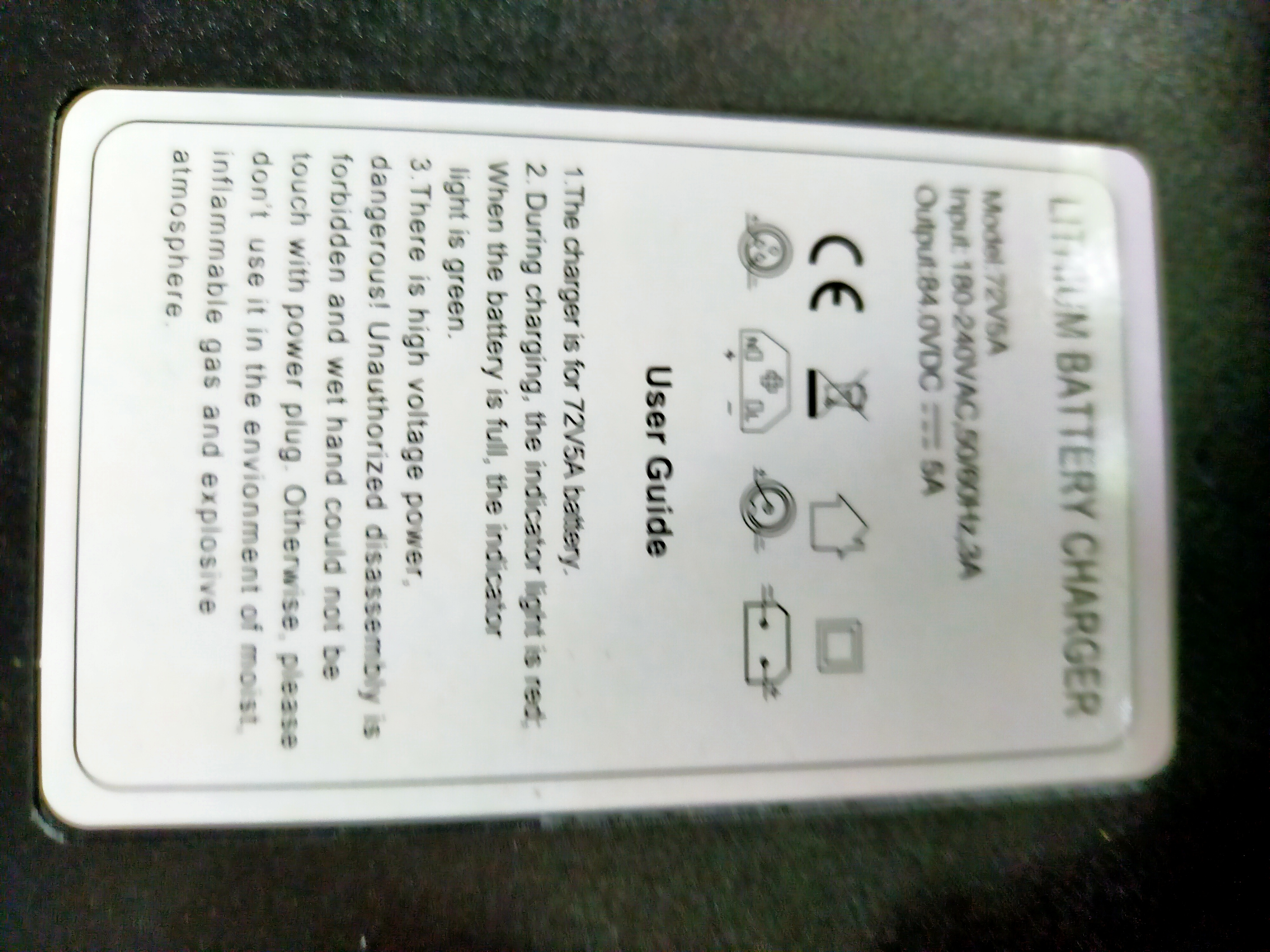 Das mitgelieferte 72V 5 A Lithium Ionen Ladegerät ist nur ein einfaches ohne Balancer