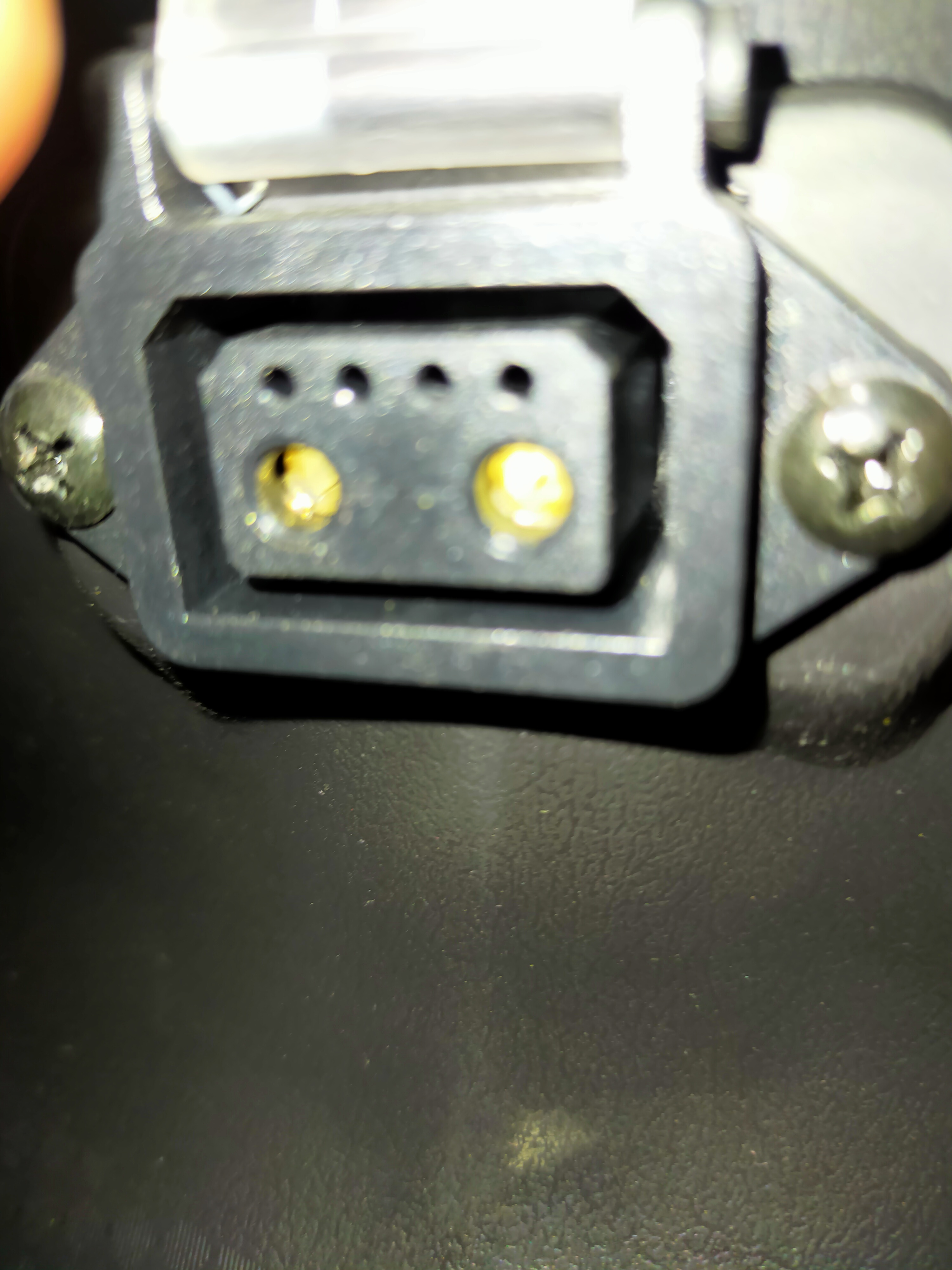 Die Akku- Steckdose hat einen dicken Plus und gleichdicken Minus Pin sowie oben 4 kleine Pin