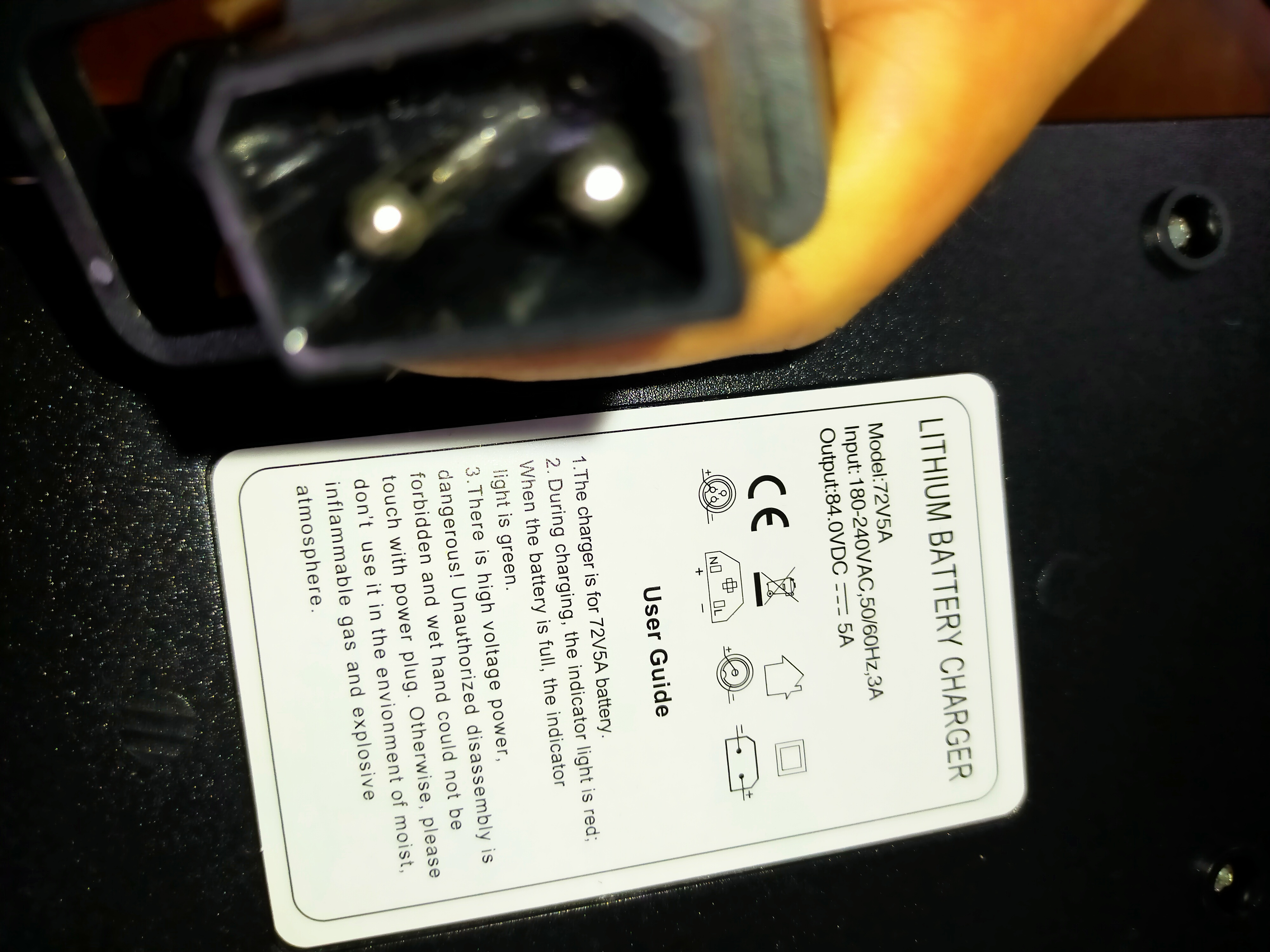 Das mitgelieferte 72V 5 A Lithium Ionen Ladegerät ist nur ein einfaches ohne Balancer