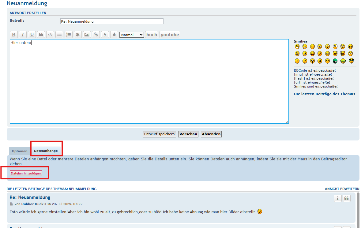 Foto würde ich gerne einstellen!Aber ich bin wohl zu alt,zu gebrechlich,oder zu blöd.Ich habe keine Ahnung wie man hier Bilder einstellt.