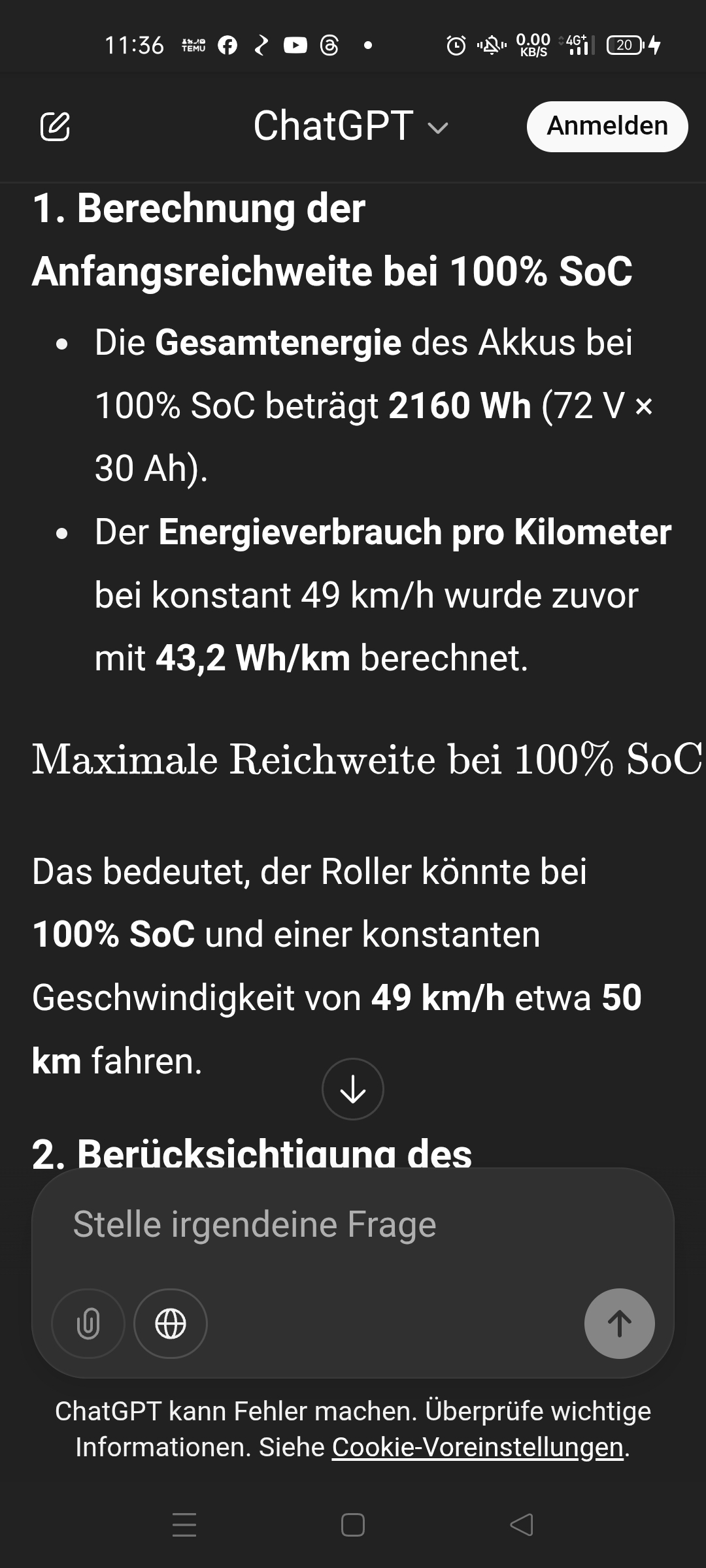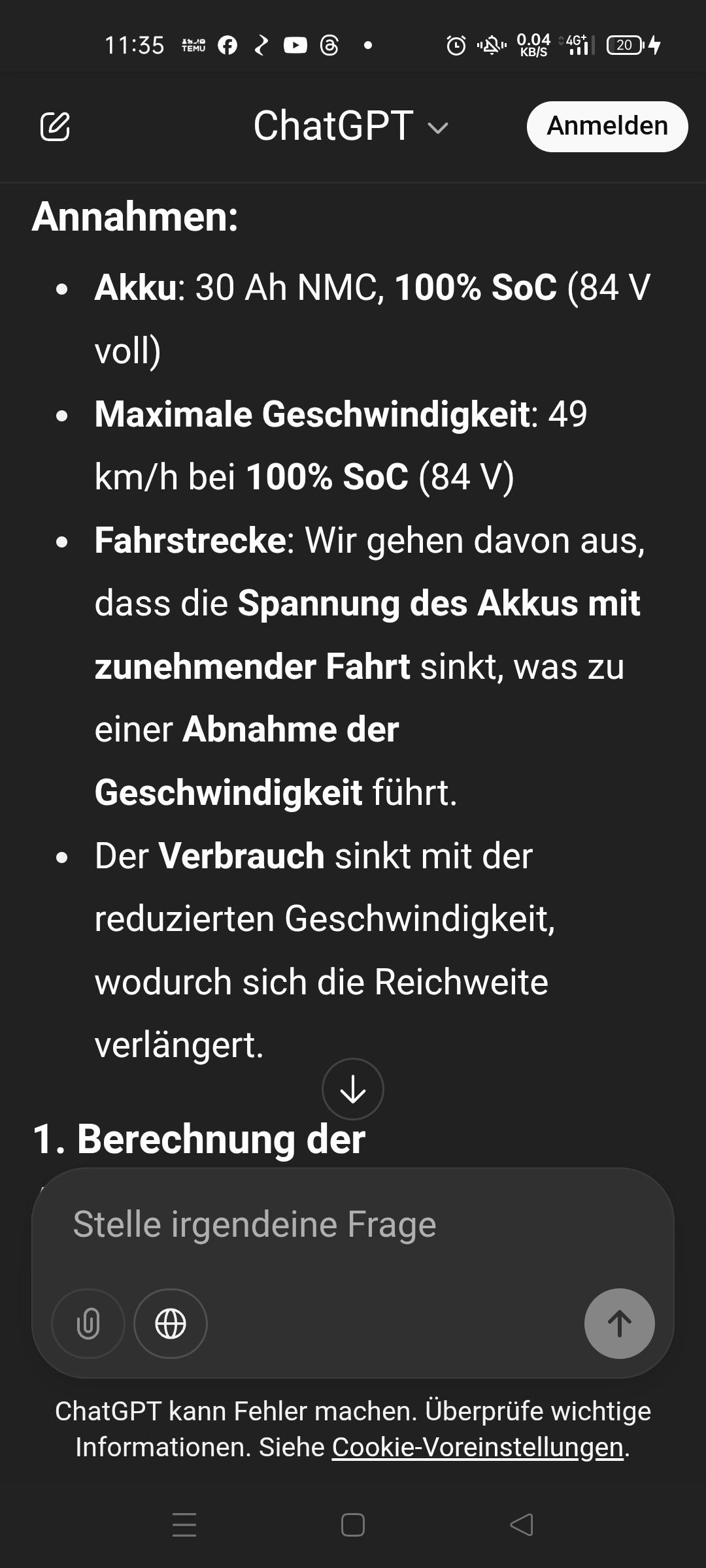 Theoretische Überlegungen betreffs nmc 30Ah Akku und dessen Ladezustand soc bei der Fahrt, Reichweite, Geschwindigkeit