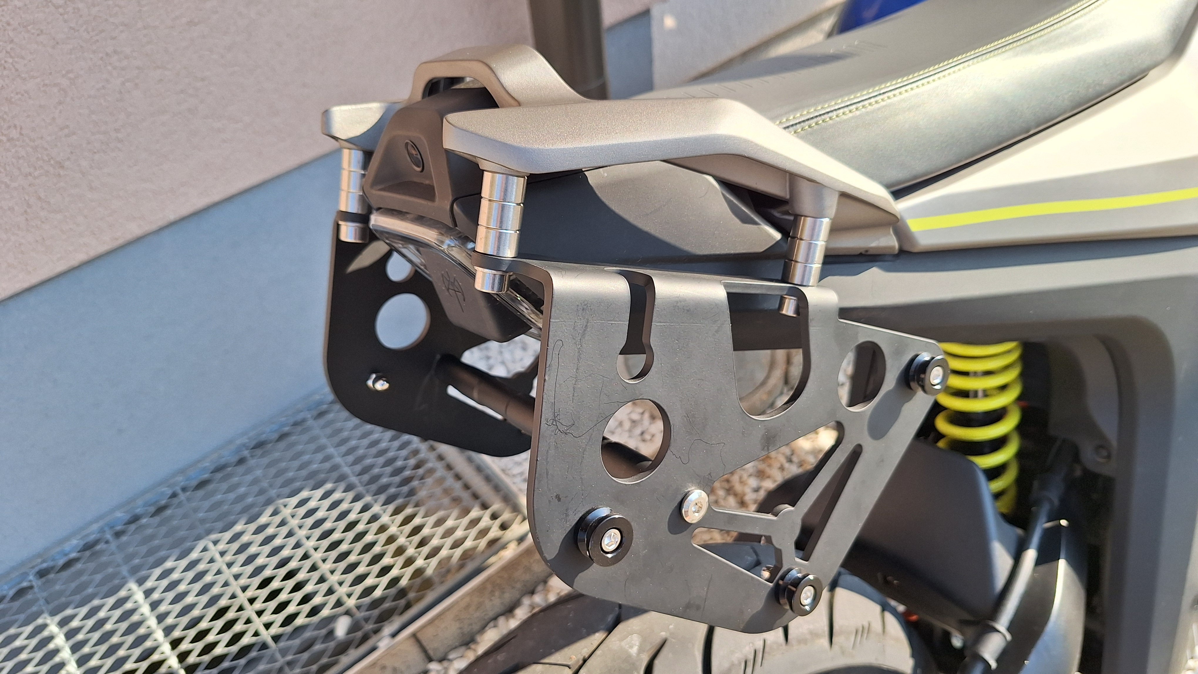 Die Breite der montierten Koffer ist ca. 65 cm. Das passt noch so von der Größe zum Bike und wirkt nicht übertrieben. Und Stauraum hab ich jetzt auch genug.