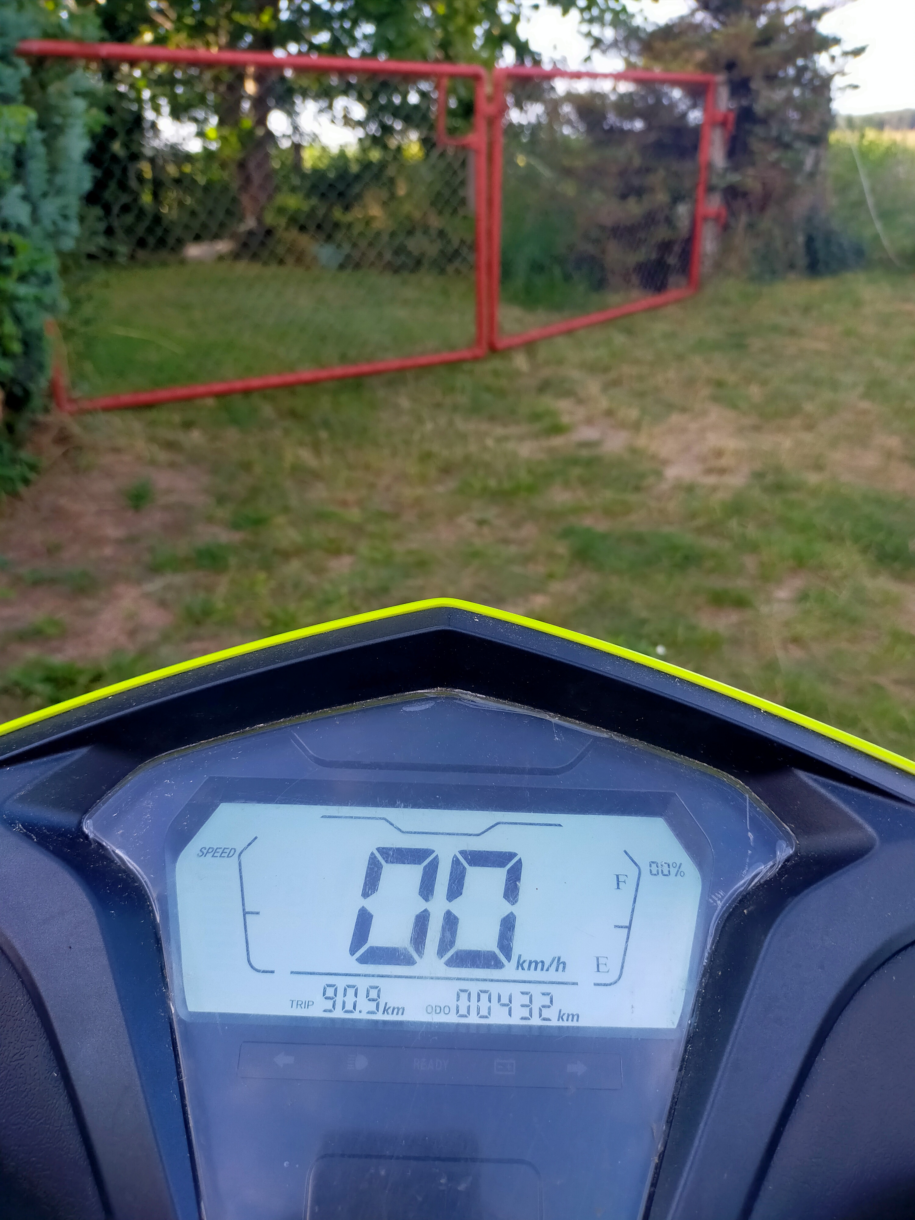 heute 90,9 km, davon die letzten 900 m ständig mit dem Fuß den Rollermotor unterstützt, so wie man als Kind Roller ohne Motor fuhr, 50 Meter. Neben her gelaufen bis der Kontroller den Motor abgeschaltet hat. Die letzten 30 Meter habe ich den Roller nach hause geschoben. Die Akkuanzeige blinkte rot bei ca.83 km laut Tacho.