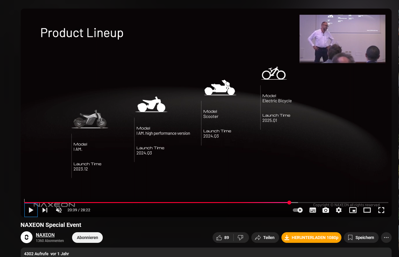 soweit ich weiß soll ein Roller und ein E-Fahrrad kommen - basierend auf der Händler-Präsentation von Naxeon auf der EICMA, Info bei 20:39
