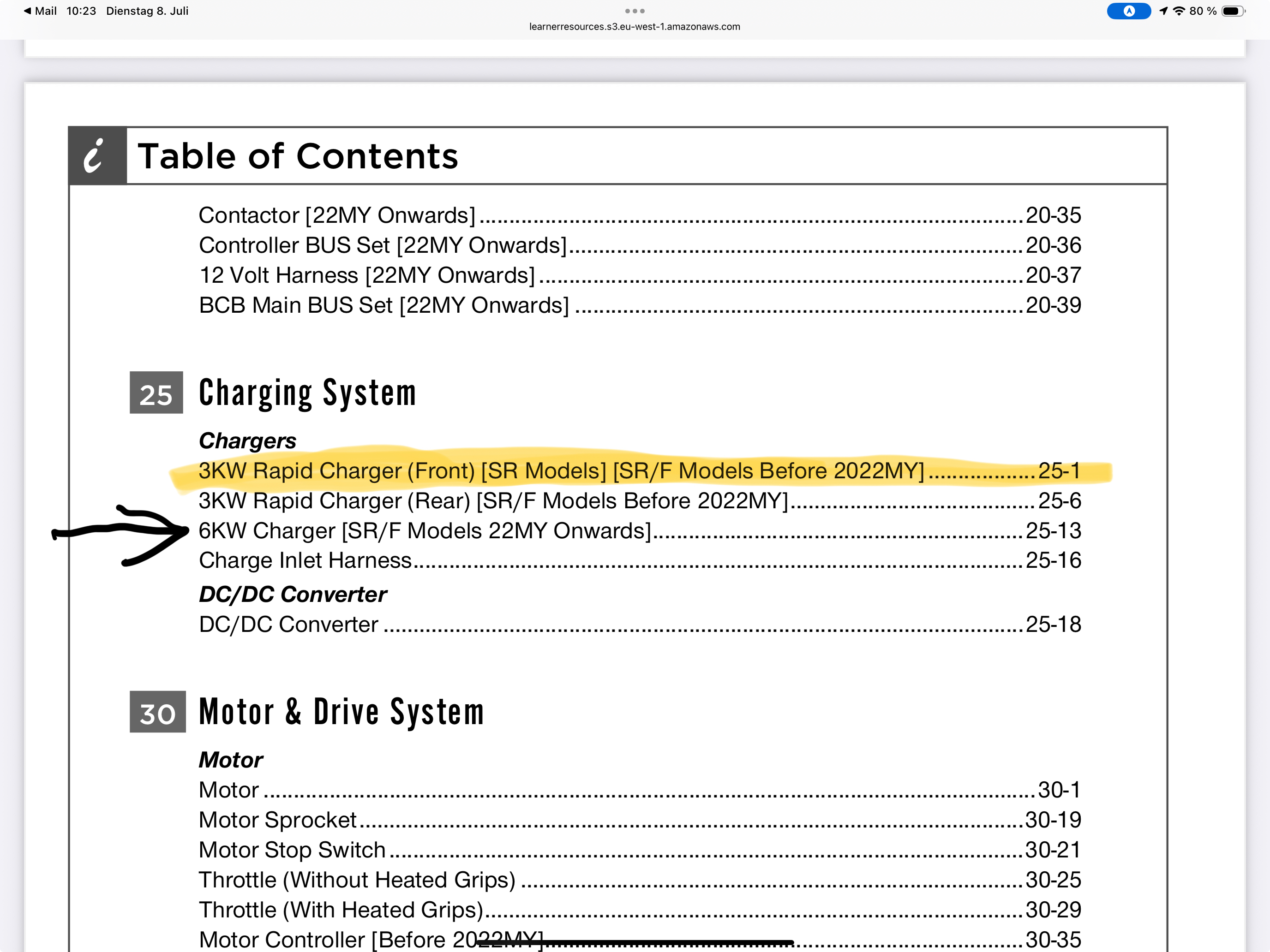 Schon das Inhaltsverzeichnis lässt vermuten, dass die einen 3kW Lader hat: Nur die SR/F scheinen ab MY2022 auch den 6kW-Lader zu haben, bei den S- und SR-Modellen sieht es so aus, als wäre Zero bei den beiden einzelnen 3kW-Ladern geblieben zu sein. Sorry.