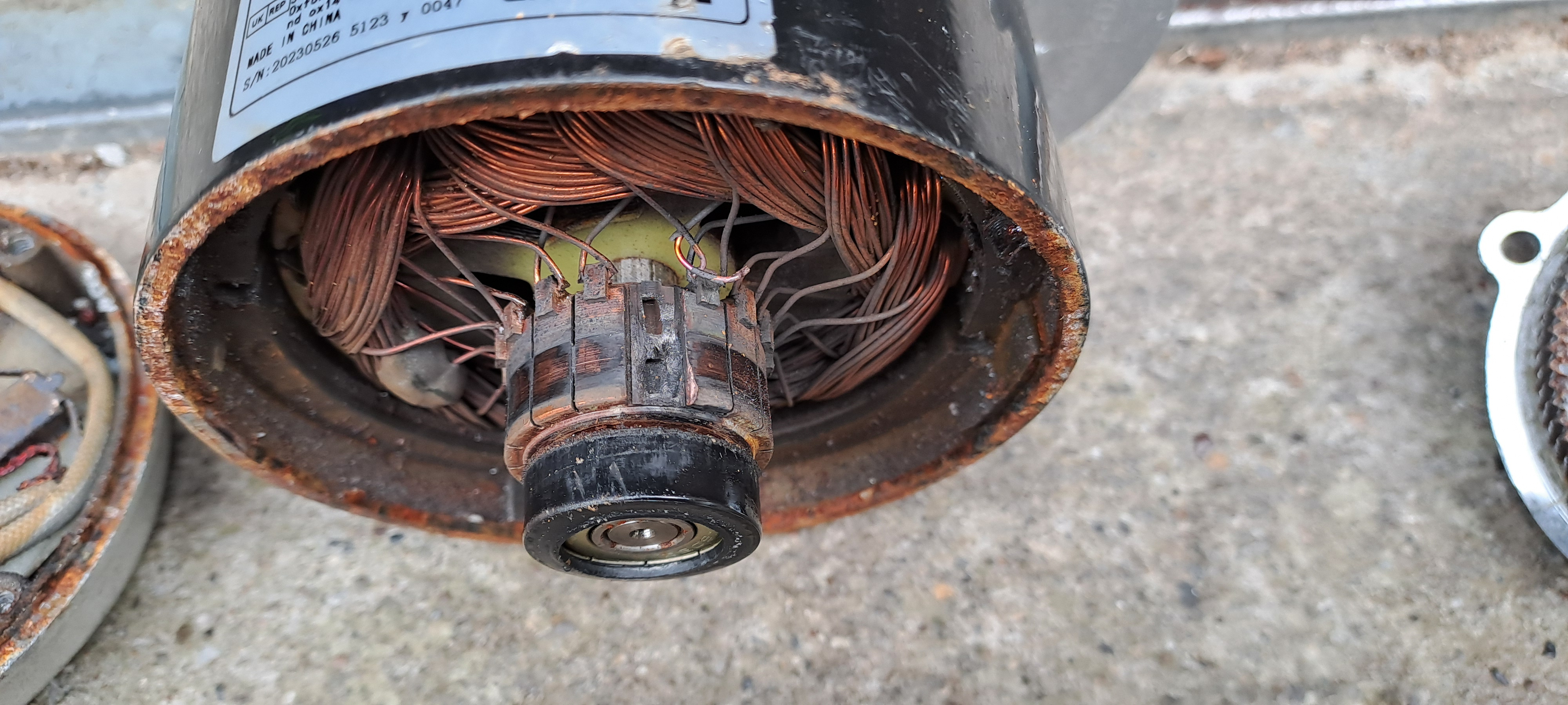 Kommutator ausgerissen. Alle Kohlenhalter abgeschert und auch Wasser im Motor.