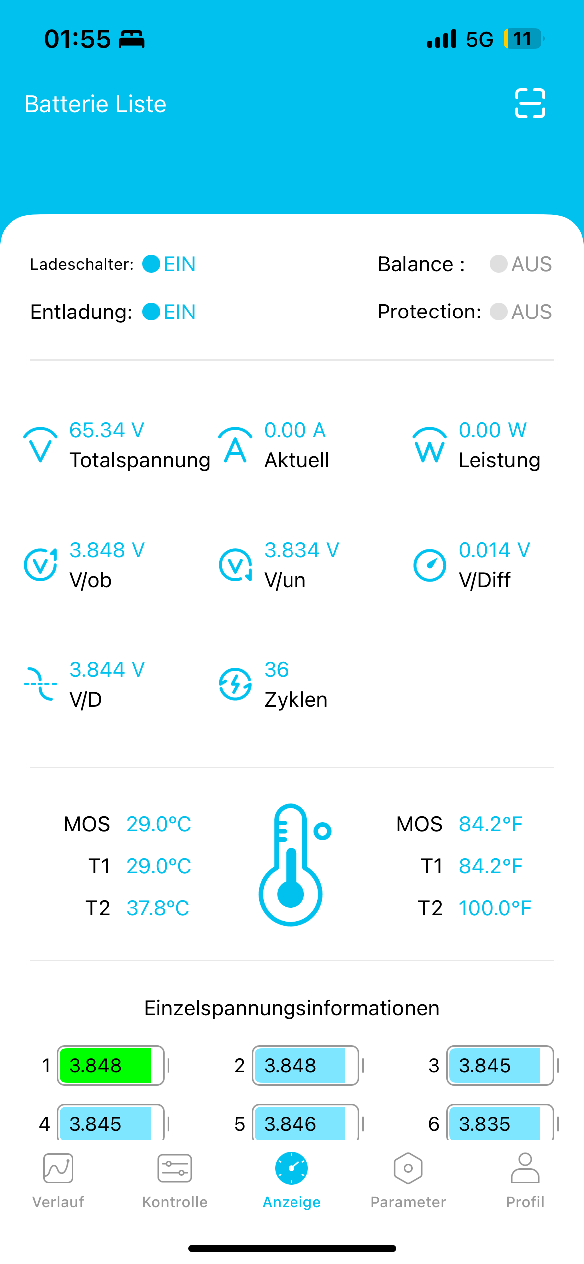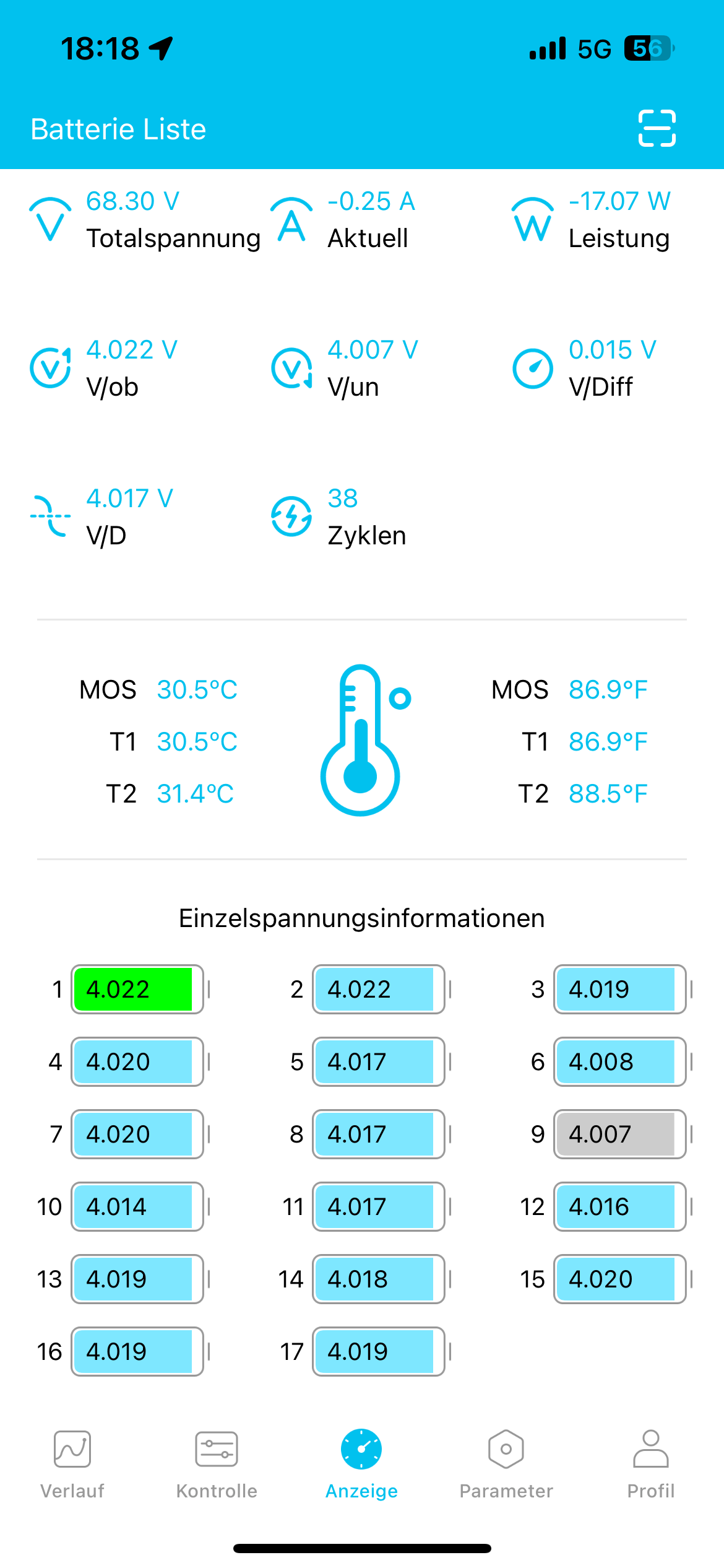 Für LiPo-Akkus gilt allerdings: wenn es wärmer wird, dann sinkt der Innenwiderstand, und Spannungseinbrüche sind daher weniger zu erwarten. Auch sehen die Screenshots der App nicht verdächtig aus, auch wenn es "nur" Leerlaufscreenshots sind.