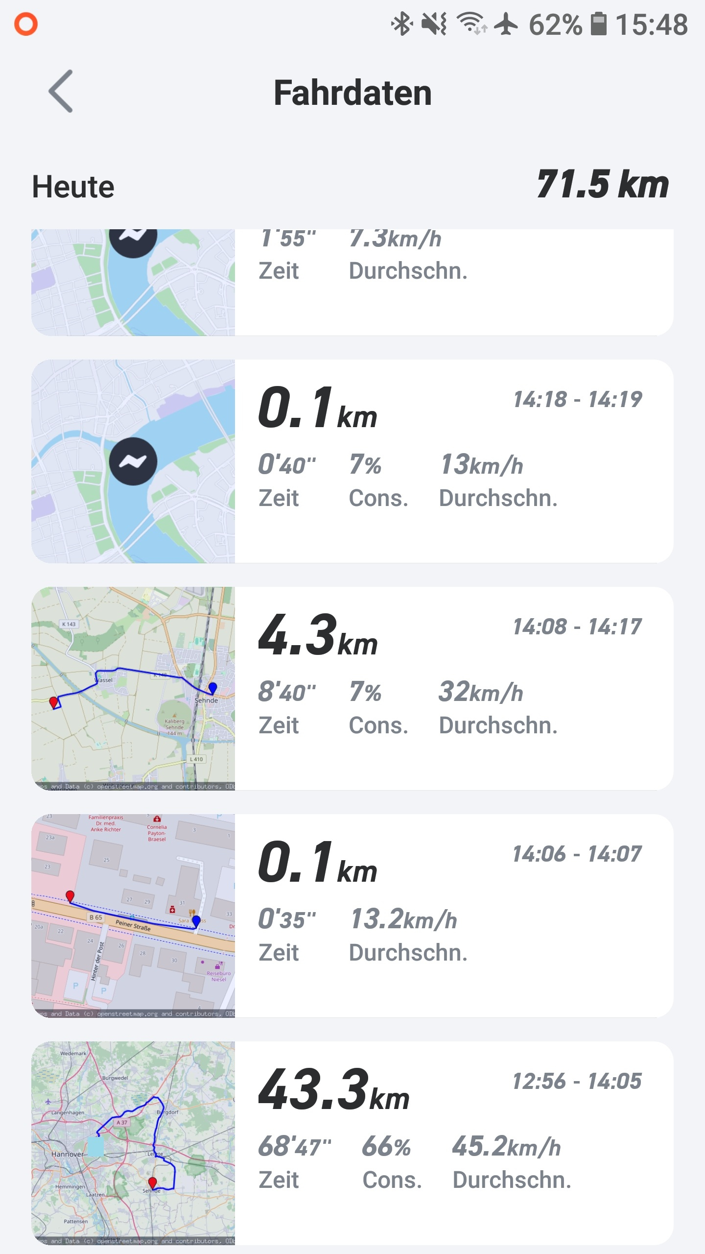 heute war das Wetter gut und ich hatte Zeit. Also mal den NIU raus und ne Reichweiten fahrt gemacht. Es ging mit Vollgas ( 54 km/h ) durch die Stadt ( ca. 10 % ) und den Rest über Landstraße und durch Dörfer. Zu 95 % mit Tempomat gefahren. Wind 17 km/h aus N-O Temperatur 8°.