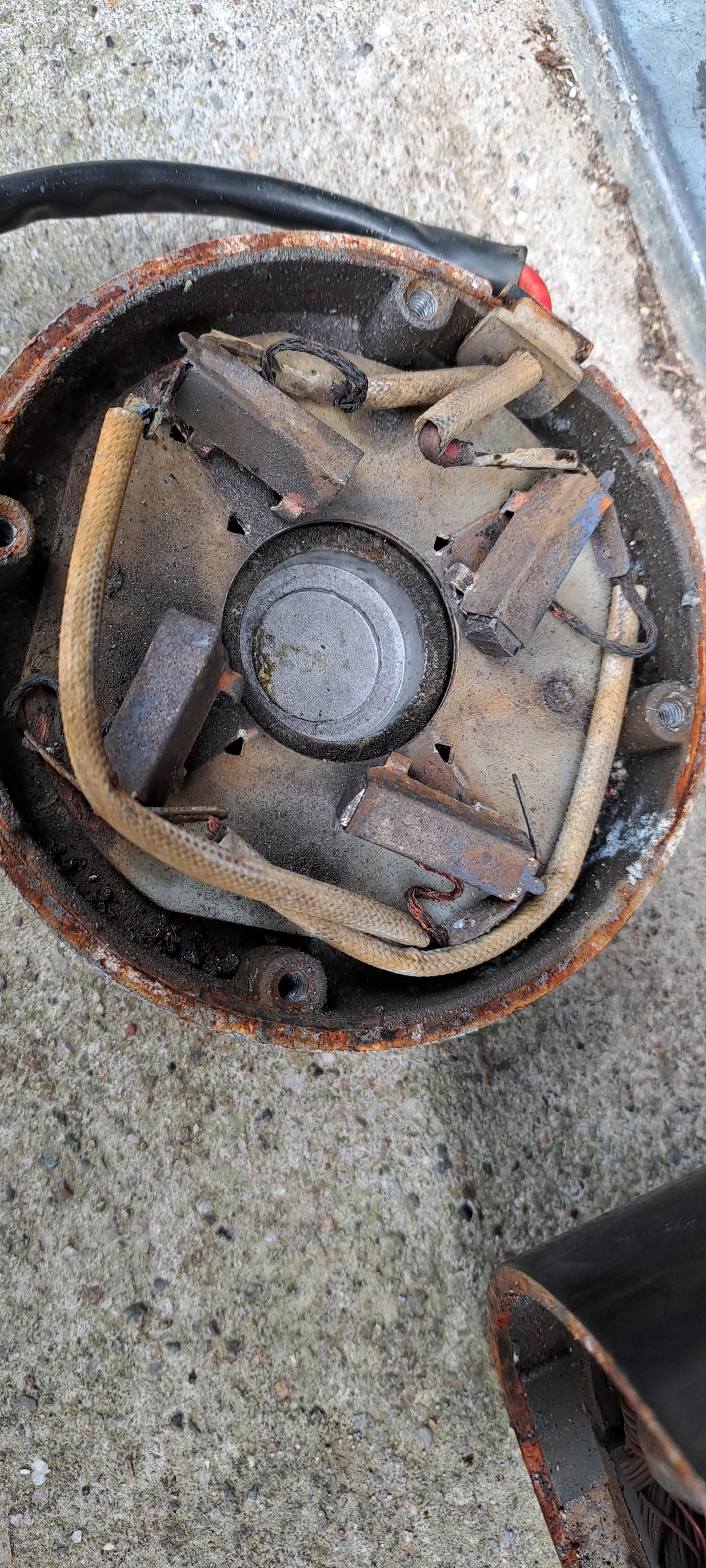 Kommutator ausgerissen. Alle Kohlenhalter abgeschert und auch Wasser im Motor.