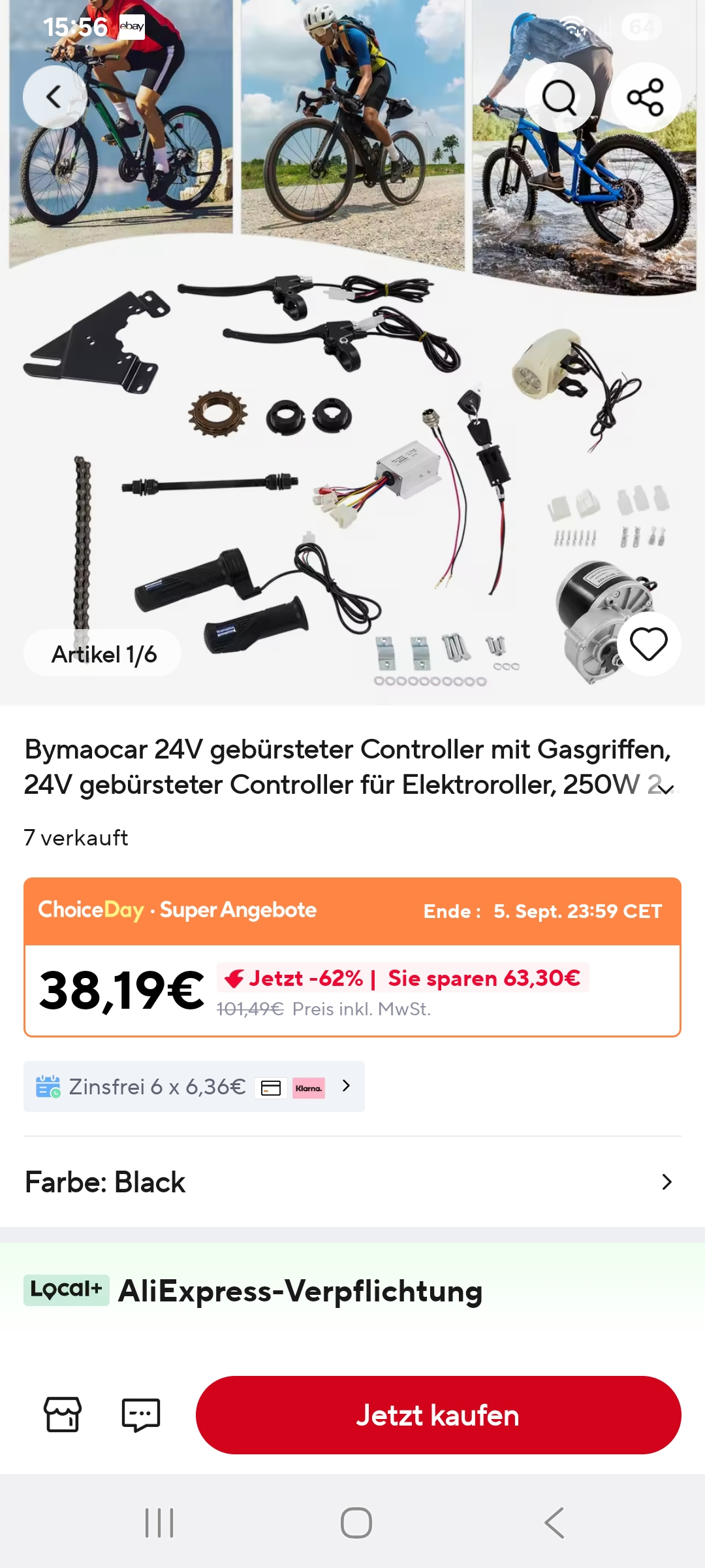 Heute kam nach zwei Werktagen aus einem Lager in Deutschland ein kompletter Umrüstsatz mit allem drum und dran, inklusive Bremshebeln mit Mikroschaltern dran, Zündschloss und LED Beleuchtung, Controller, Kette, Freilaufritzel, Steckachse, Motor und Ladeanschluss, zum halben Preis (ich hab 32Euro dafür bezahlt)wie ich es vor zwei Jahren gekauft habe und mit deutlich mehr Zeugs dabei und billiger als ich den nackten Motor aus China gefunden habe.