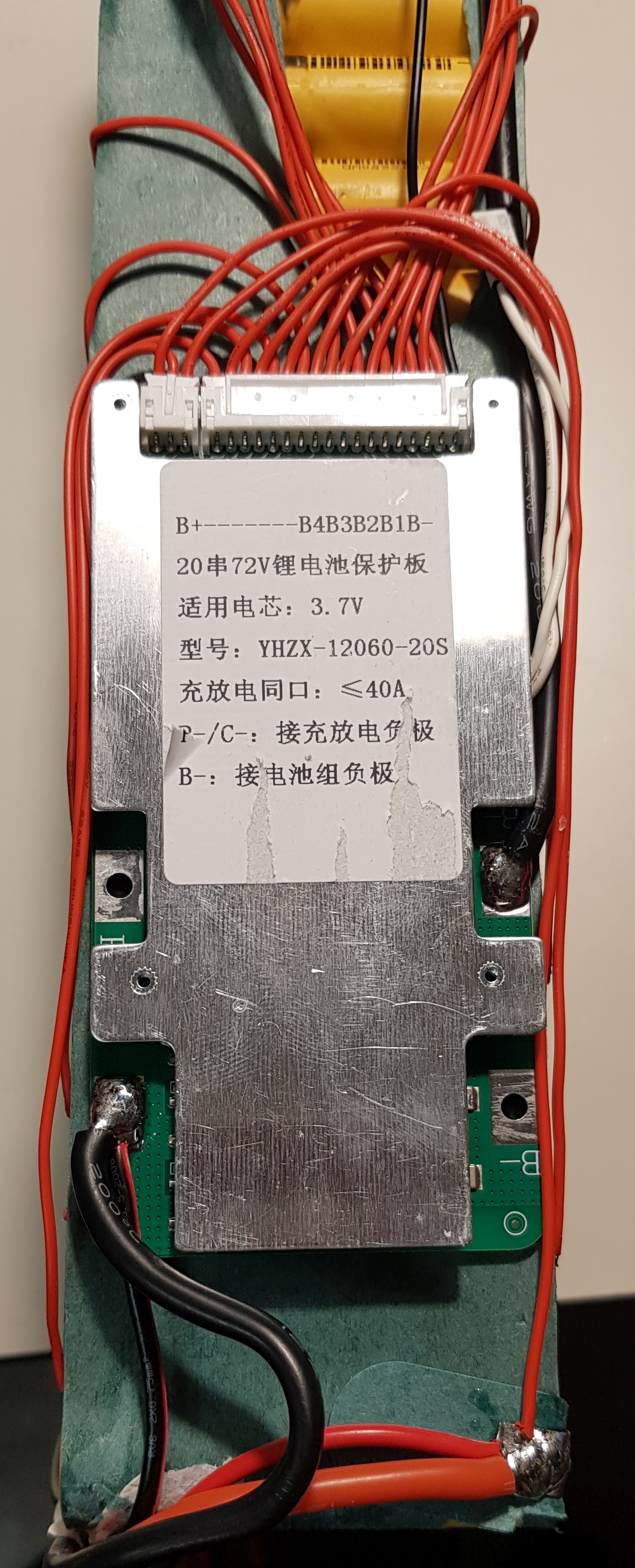 Die 20 Zellen heraustrennen. Die Nickelstreifen mit einer Schere durchtrennen ohne einen Kurzschluss zu verursachen. 20 neue 2.600mAh mit Z Loetfahnen bei nkon.nl oder AliExpress kaufen und das ganze wieder zusammenbauen. Vorher die balancerstecker vom BMS abziehen. Den Stecker mit Zelle 20 zuerst abziehen.