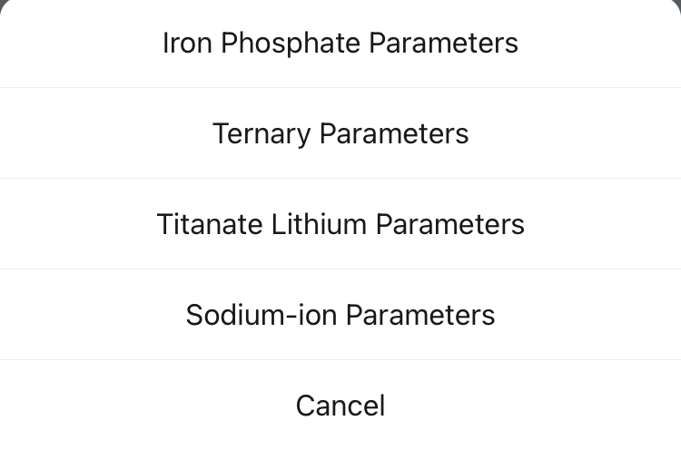 Was ich noch wissen sollte, was muss ich beim ANT-BMS einstellen, zur Auswahl hab ich nur Iron Phosphate, Ternary, titanite lithium, Sodium -Parameters Ich hab keine Ahnung welchen Typ Zelle ich bekommen habe. Auch bei der nachgekauften Zelle steht nur Chemistry: Li-ion drauf.