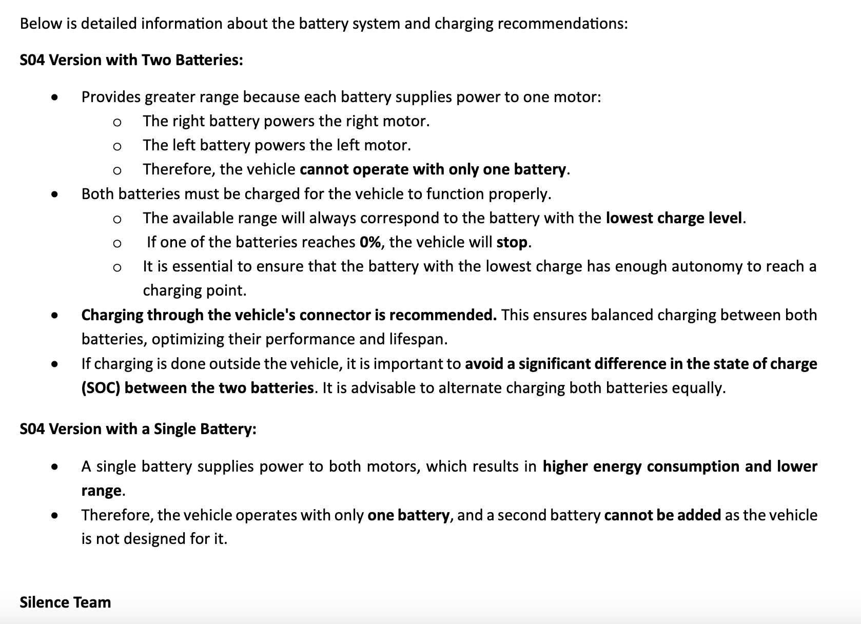 Oh Gott oh Gott.... das ist ja die denkbar mieseste Umsetzung die man sich vorstellen kann! Das heißt, Silence bürdet dem Nutzer auf, peinlichst genau darauf zu achten dass beide Akkus immer möglichst exakt gleich geladen sein müssen, damit du unterwegs keine Überraschungen erlebst...?! Das ist ja echt unterirdisch schlecht. Was für ein "Glück", dass ein Kauf eines S04 in der "großen" Variante und mit 2 Akkus wegen wahnwitziger Preisgestaltung bei mir ad Acta gelegt wurde.error hat geschrieben: ↑Do 8. Mai 2025, 11:50Silence sagt zu den beiden Versionen einduetig was geht (und nicht geht):