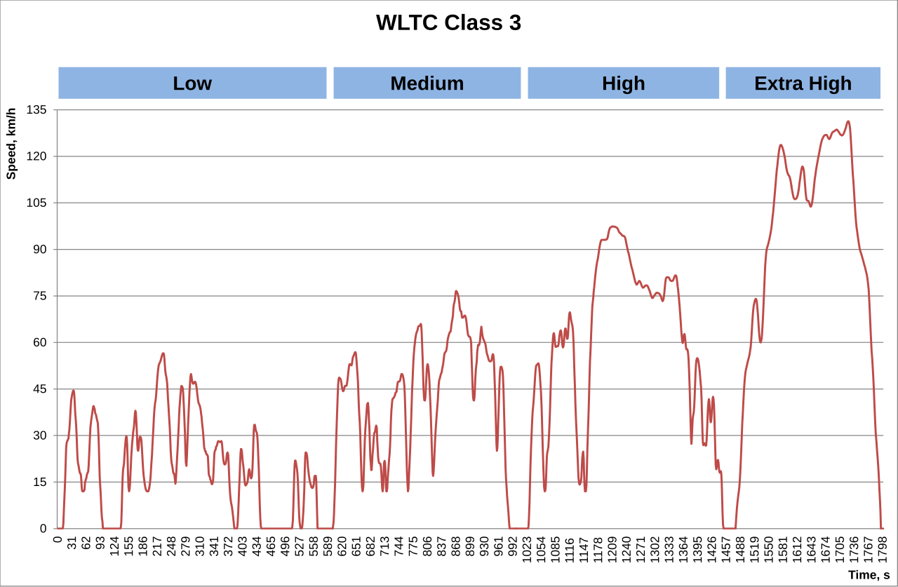 Eigentlich gibt es genau dafür eine WLTP-Reichweitenangabe, die eigentlich verpflichtend sein sollte. Die ist zwar auch sehr optimistisch, aber zumindest sind die Fahrzeuge dann vergleichbar. Bei WLTP gilt folgendes Profil (Quelle Wikipedia):