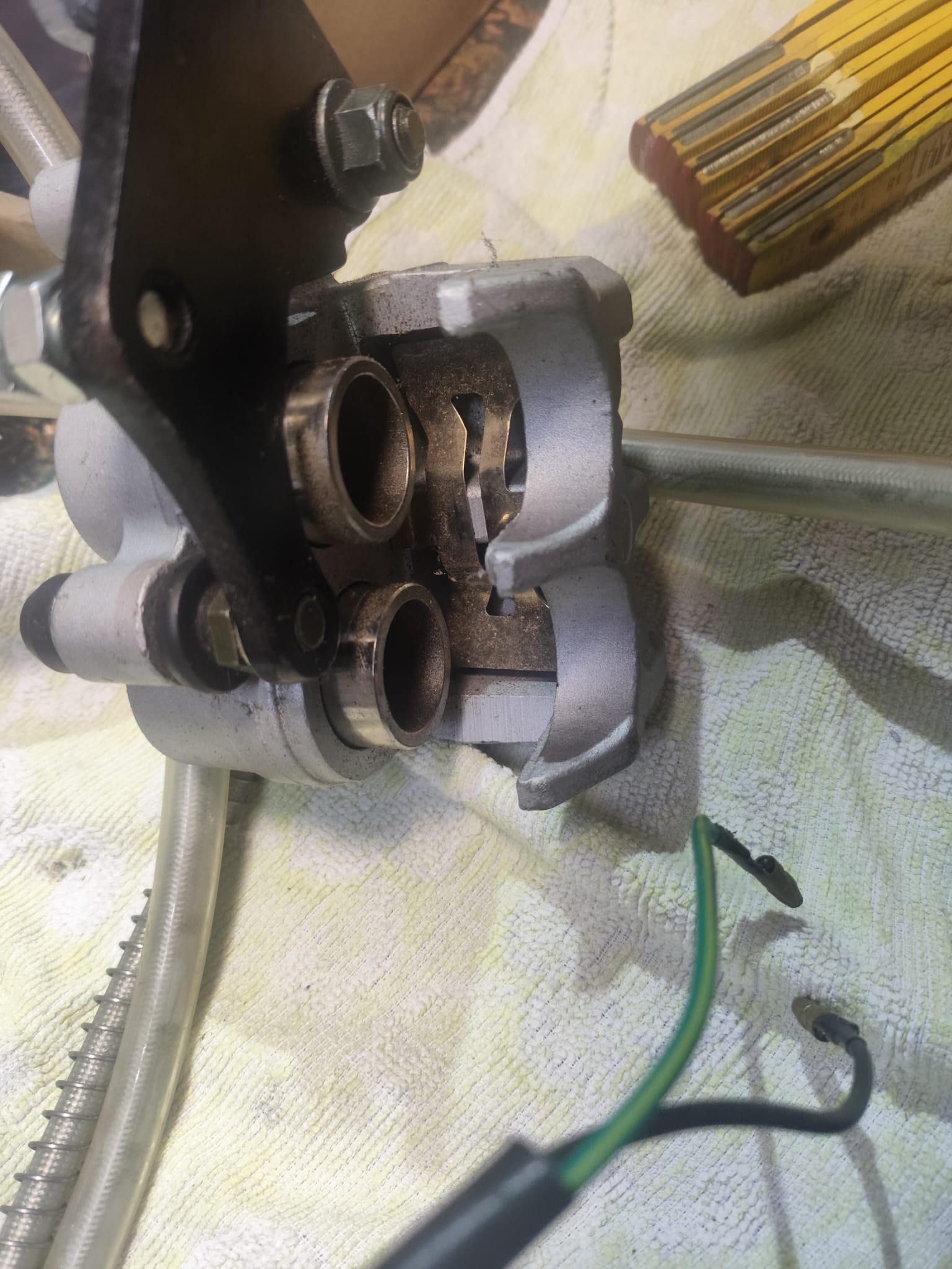 (bei einem Deckel fehlt die Schraube, bei einem Sattel die Sicherungsstifte für die Beläge....man kann sie vom alten Teilen nehmen.)