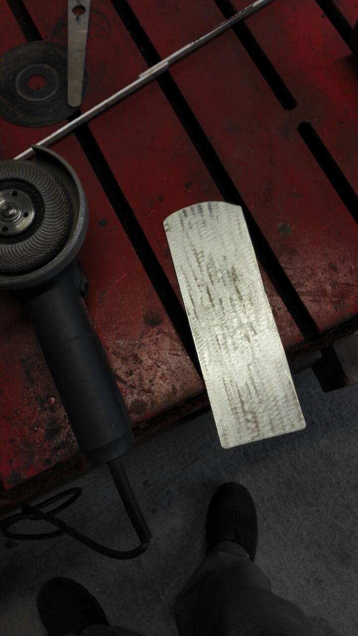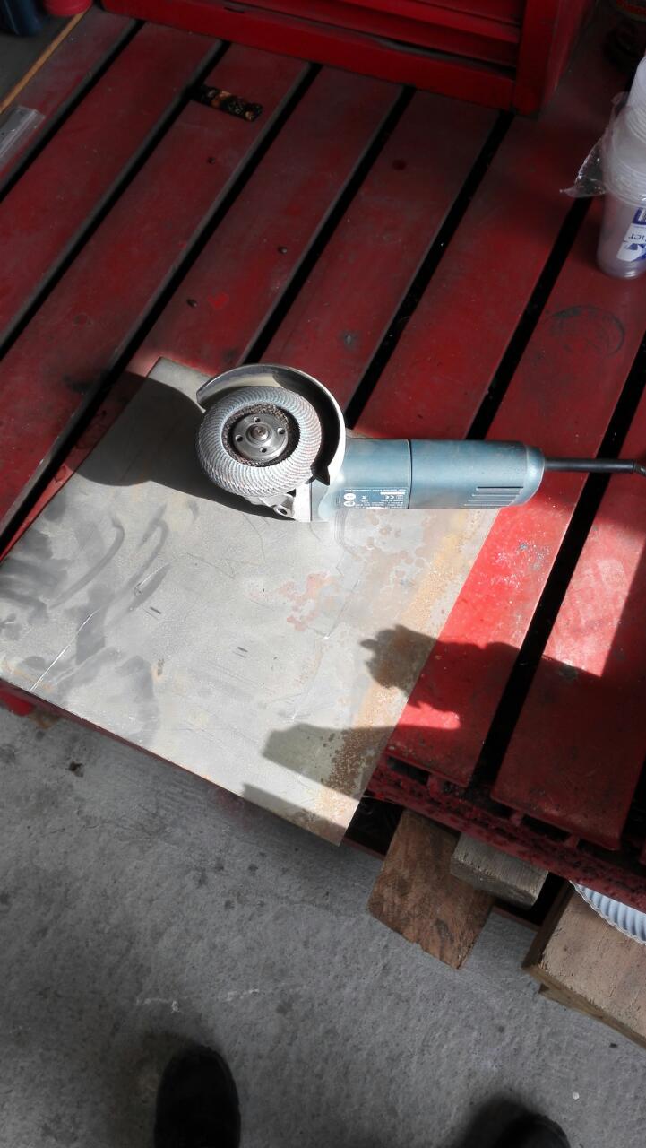 Seitlicher Spritzschutz angeschweißt und die Nähte schön abgezogen am Schleifbock