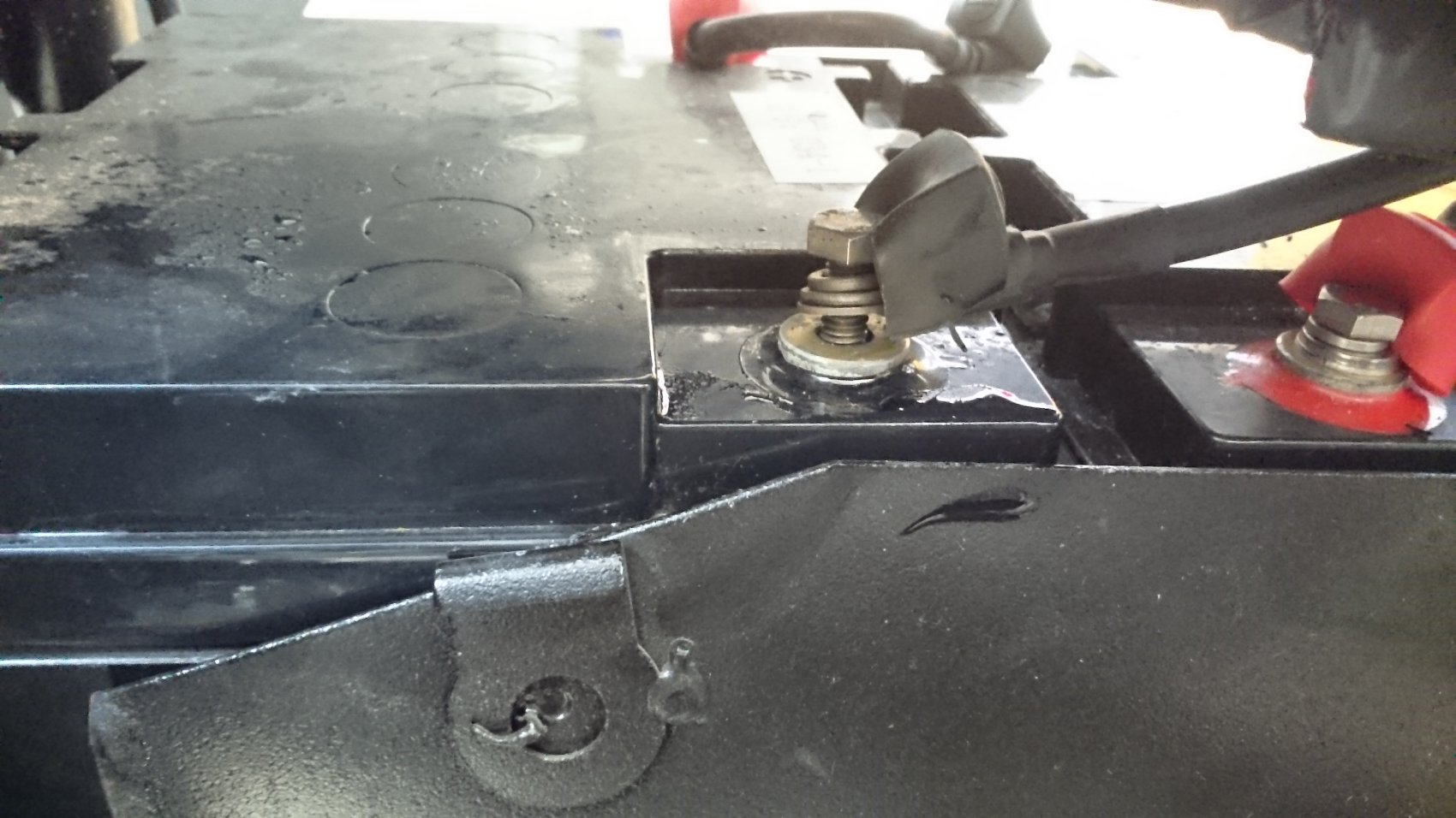 Also muss die Satteltasche mit dem Tankdeckel auch ab. Erst dann kann ich die übrigen Akkus entnehmen und die Polverbindungen