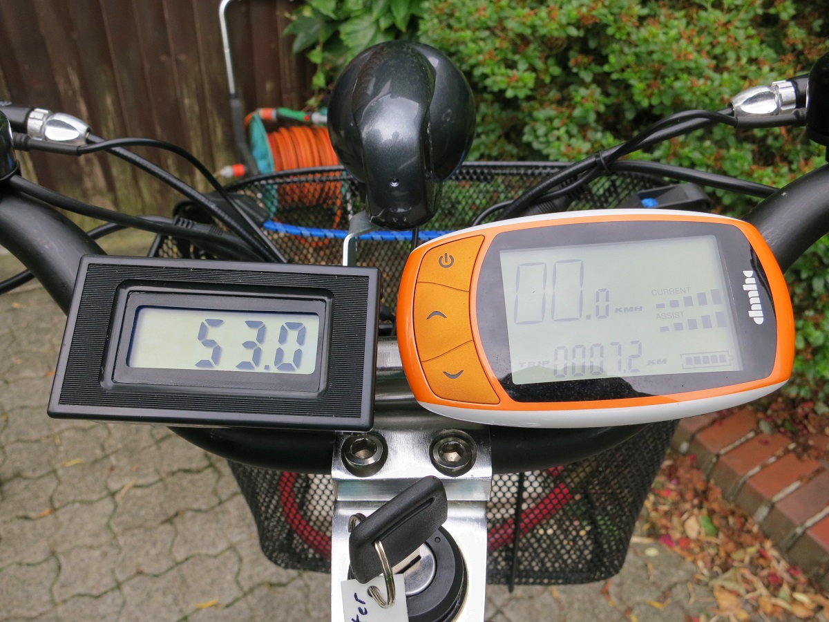 Voltmeter am Lenker mit den Kabelbindern befestigen.