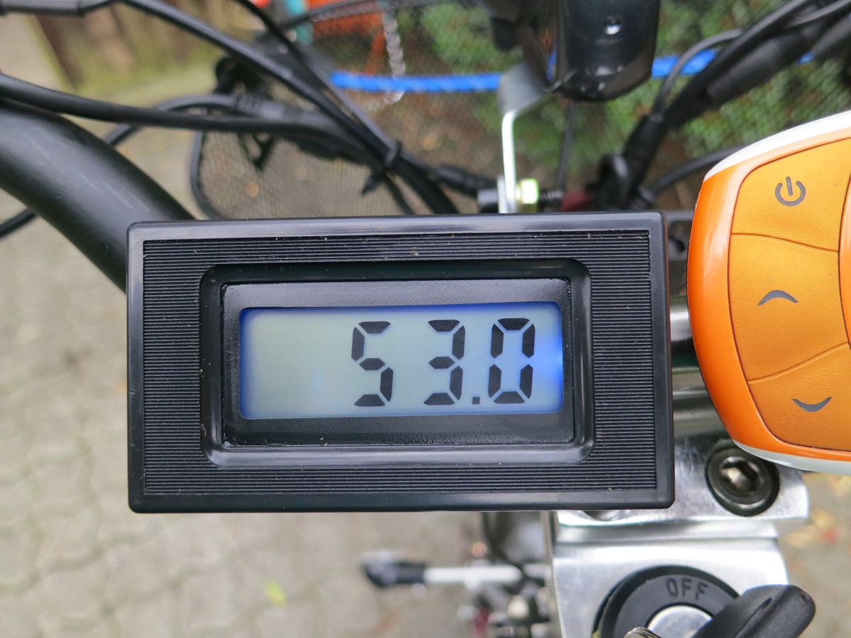 Voltmeter am Lenker mit den Kabelbindern befestigen.