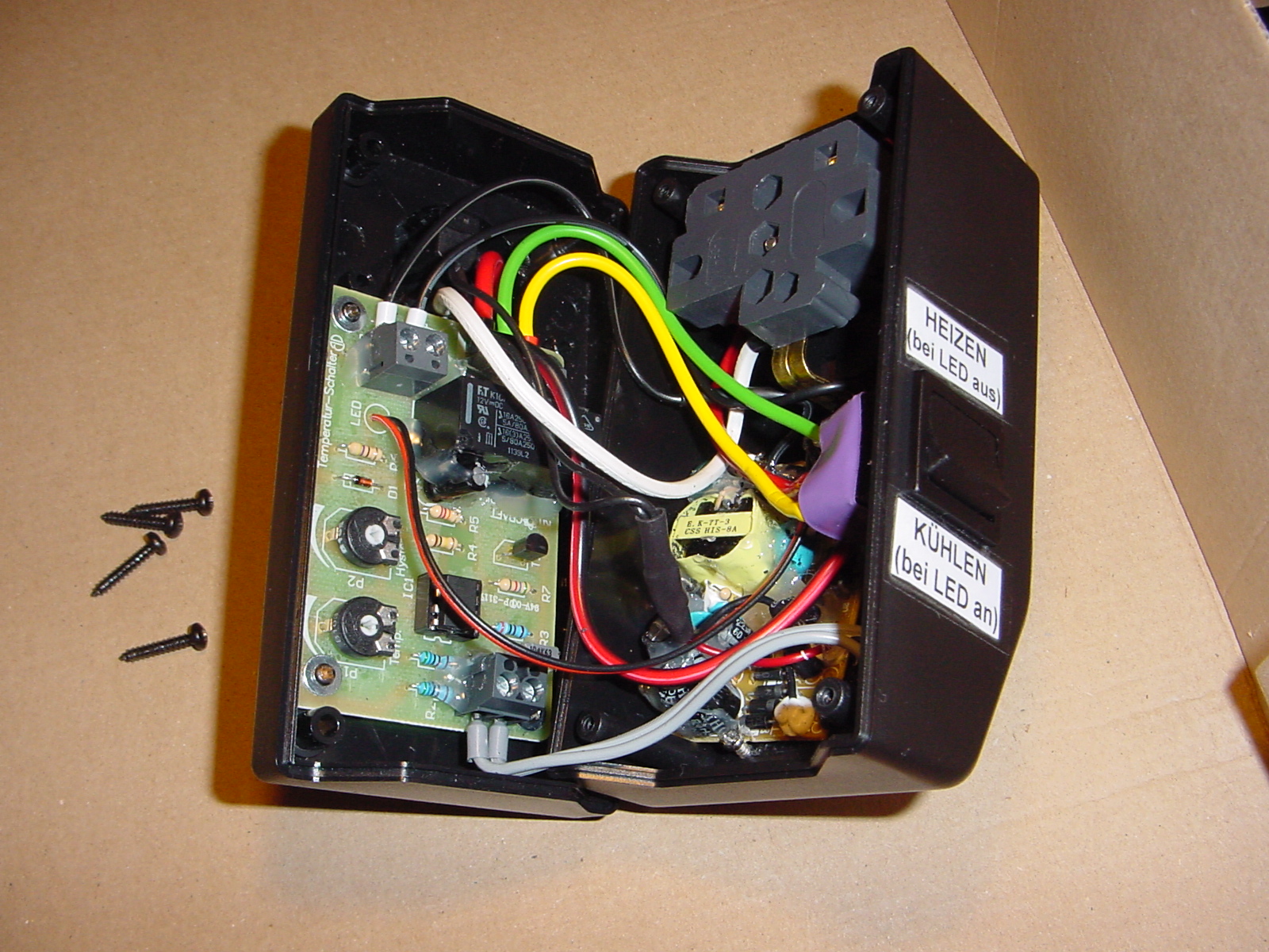 Als pures Experimentierprojekt wollte ich, da weder zu vertretbaren Kosten noch in der von mir benötigten Bauform als Zwischensteckdose verfügbar (EDIT am 08.01.2016: Beim blauen C gibt es inzwischen genau so etwas...), mir selber einen Thermostaten bauen, der am Netz zu betreiben ist und in den ich direkt meine 230V Batterieheizung im Thunder-Fury einstecken konnte, samt dem zum Thermostaten gehörenden PTC-Widerstand, den ich schon vor der Weichnachtspause in meiner Batterie vergraben hatte, direkt neben dem Sensor vom Batterietemp.-Solarthermometer.