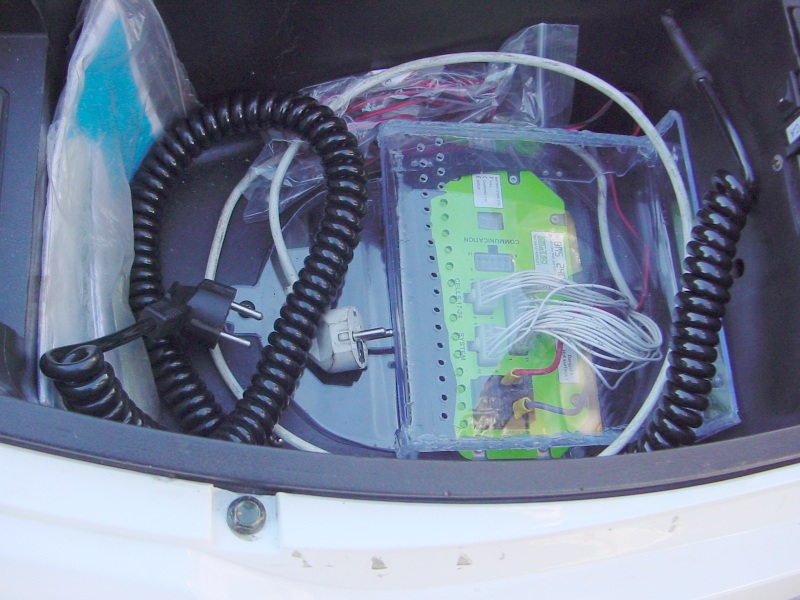 Oben drauf steht der silberne Inverter 13,5V=/230V~, in den auf diesem Bild gerade nichts steckt.